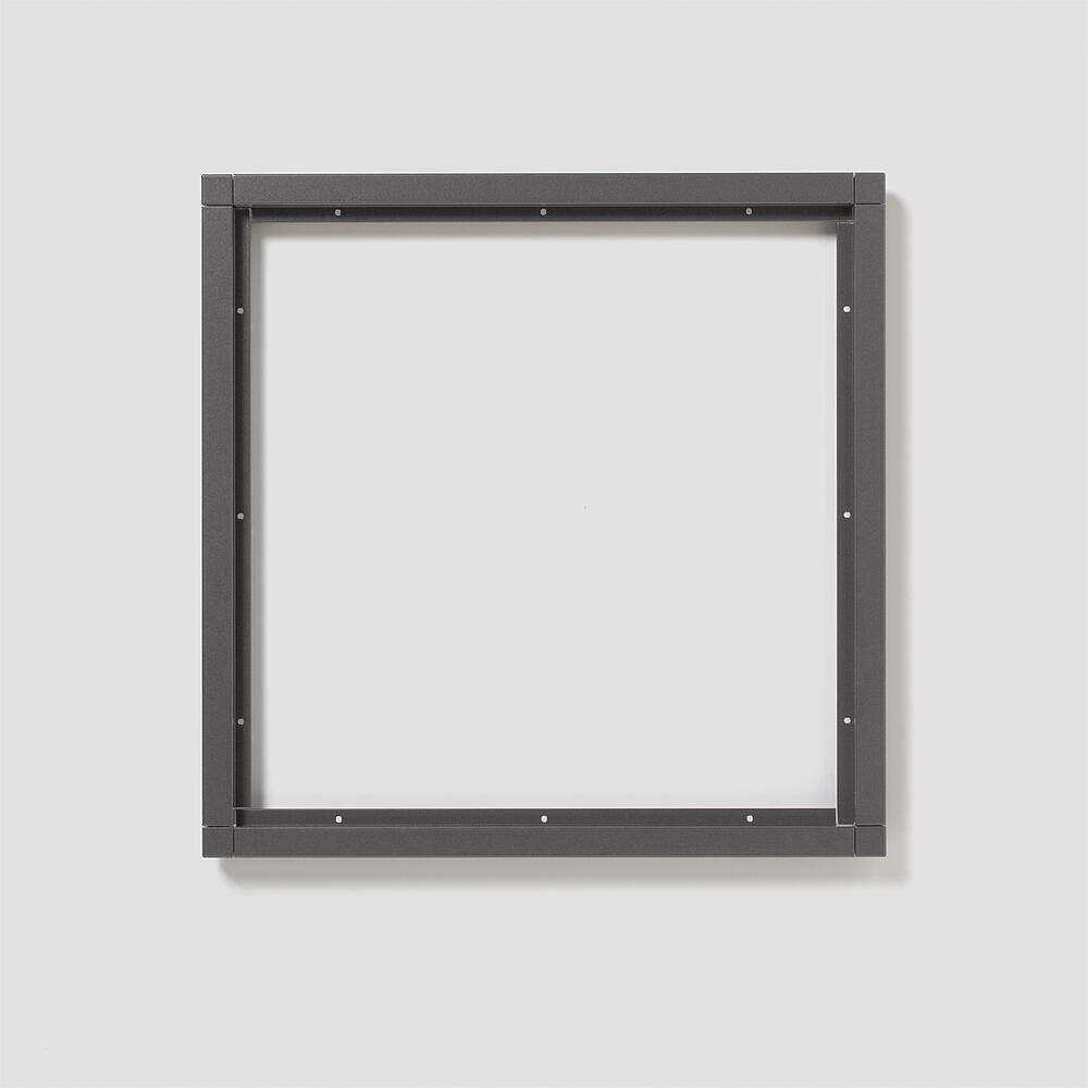 Kombirahmen aus Aluminium-Strangpressprofilen, pulverbeschichtet bzw. lackiert, umschließt die Funktionsmodule und deckt die Putznut ab.