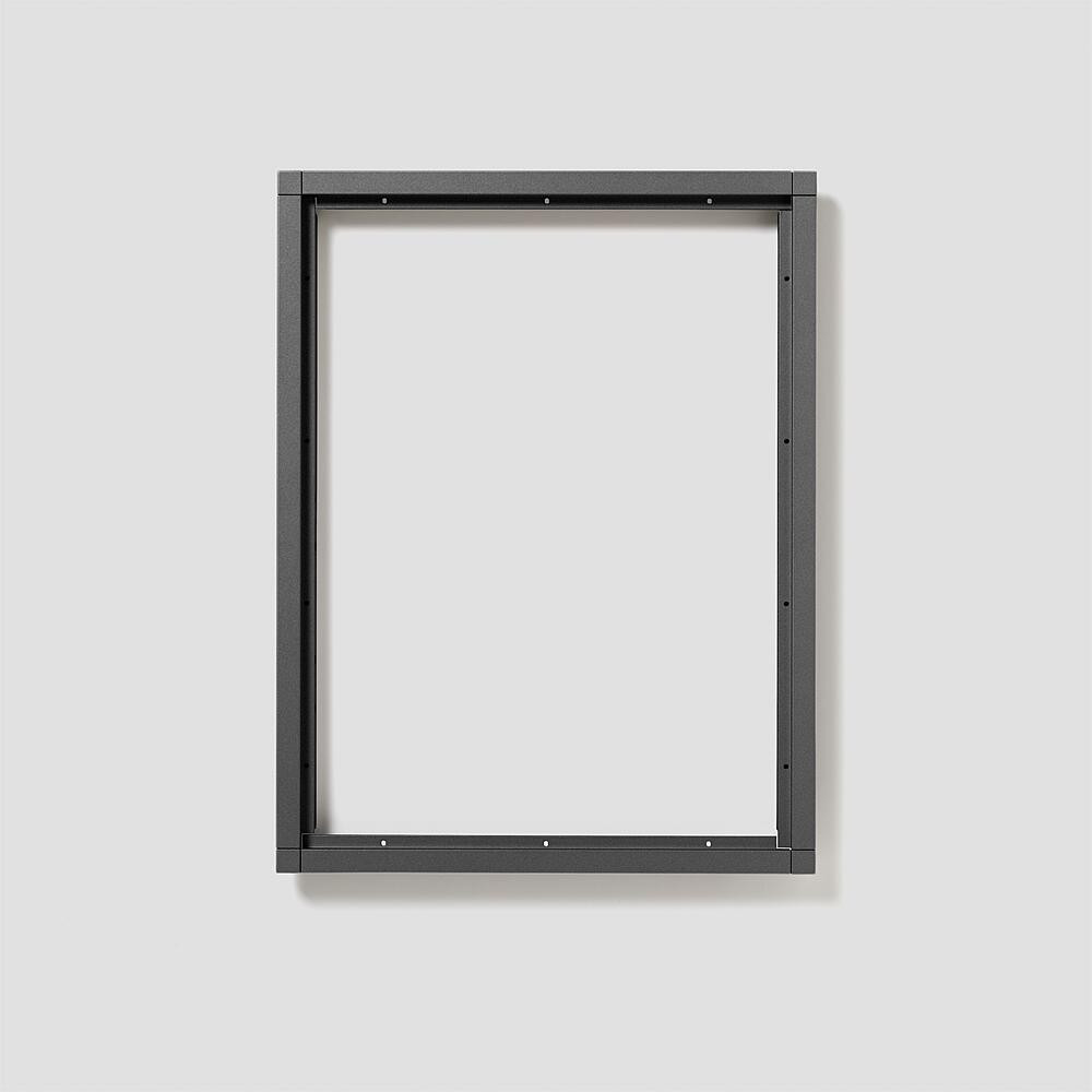 Kombirahmen aus Aluminium-Strangpressprofilen, pulverbeschichtet bzw. lackiert, umschließt die Funktionsmodule und deckt die Putznut ab.