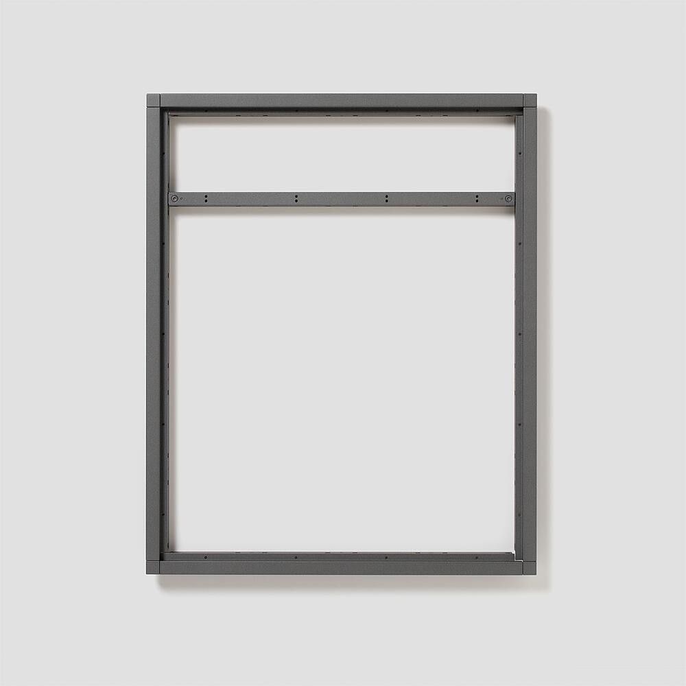 Kombirahmen aus Aluminium-Strangpressprofilen, pulverbeschichtet bzw. lackiert, umschließt die Funktionsmodule und deckt die Putznut ab.