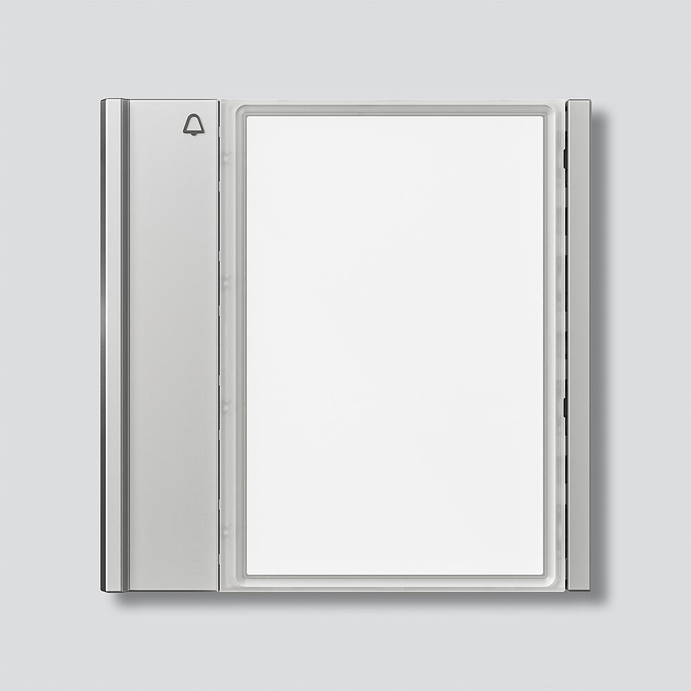 Ruftasten für Siedle Vario: 1 Ruftaste mit Glockensymbol und hinterleuchtbarem, wechselbaren Namensschild. Einfache Verkabelung durch vorkonfektionierte, steckbare Kabelverbindung.