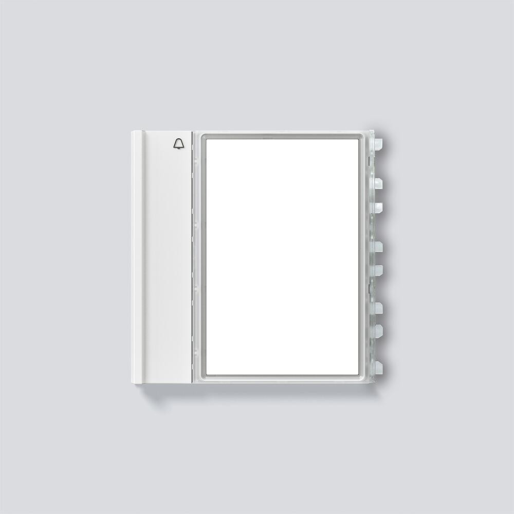 Ruftaste bestehend aus Namensschild-Oberteil, Namensschild-Unterteil und Schrifteinlage für das TM 700-1-0.