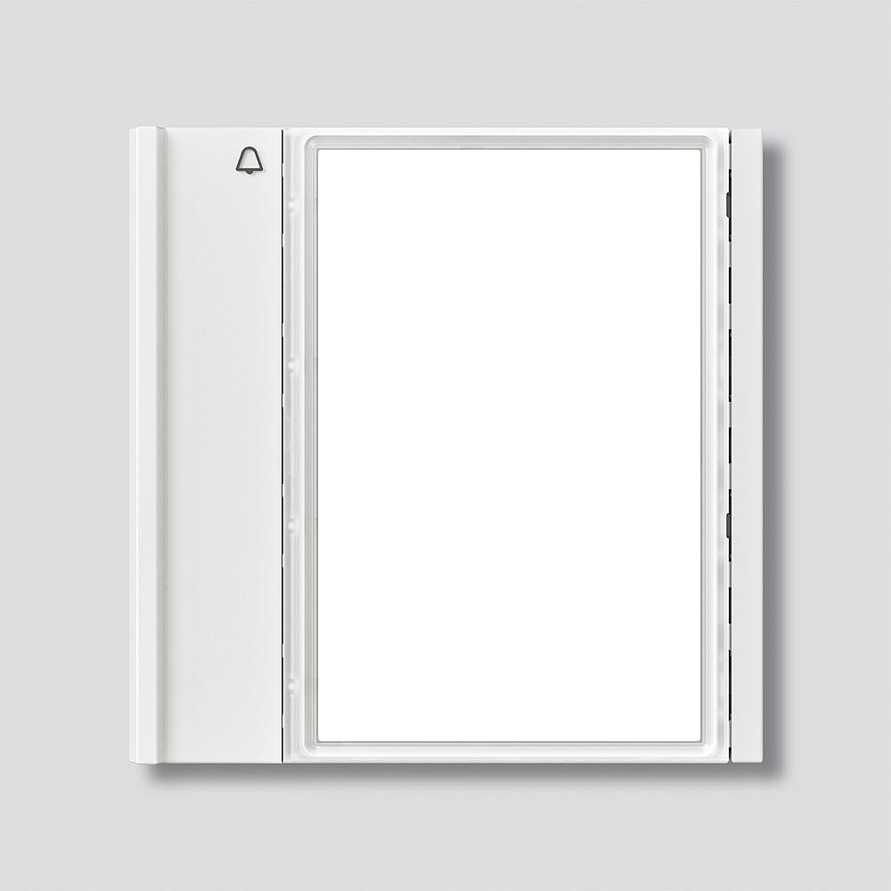 Ruftasten für Siedle Vario: 1 Ruftaste mit Glockensymbol und hinterleuchtbarem, wechselbaren Namensschild. Einfache Verkabelung durch vorkonfektionierte, steckbare Kabelverbindung.