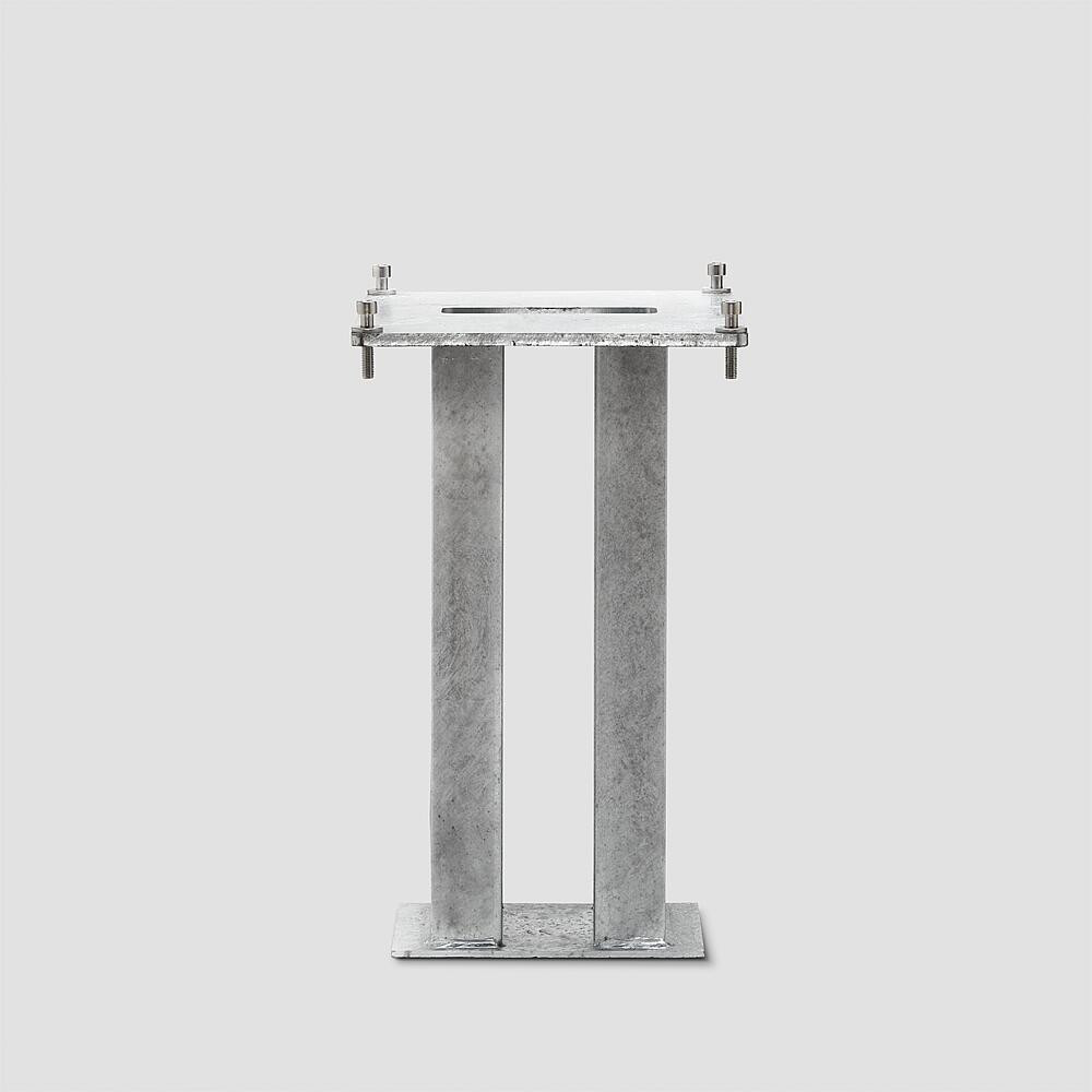 Zubehör-Erdstück für freistehende Kommunikations-Stelen 308 x 308 aus stabilem, feuerverzinktem Stahl mit innenliegender Kabelführung und Bodenflansch mit aufgeschweißten Muttern zur Befestigung der Bodenplatte der Kommunikations-Stele.