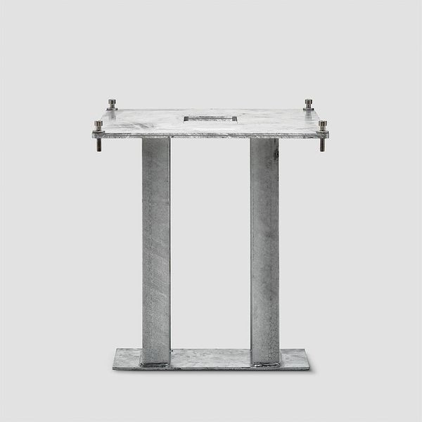 Zubehör-Erdstück für freistehende Kommunikations-Stelen 462 x 462 aus stabilem, feuerverzinktem Stahl mit innenliegender Kabelführung und Bodenflansch mit aufgeschweißten Muttern zur Befestigung der Bodenplatte der Kommunikations-Stele.