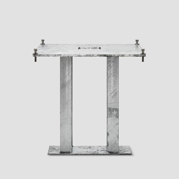 Zubehör-Erdstück für freistehende Kommunikations-Stelen 518 x 462 aus stabilem, feuerverzinktem Stahl mit innenliegender Kabelführung und Bodenflansch mit aufgeschweißten Muttern zur Befestigung der Bodenplatte der Kommunikations-Stele.
