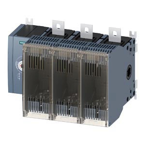 Lasttrennschalter mit Schmelzsicherung 400 A, Baugröße 4, 3-polig für NH-Sicherung Baugröße 1 und 2 Frontantrieb links Grundgerät ohne Knebel Flachanschluss ohne Schmelzsicherungen Lasttrennschalter mit Sicherungen 3KF sind optimiert für anspruchsvolle Anwendungen, bei denen NH-Sicherungen eingesetzt werden. Lasttrennschalter mit Sicherungen von Siemens bieten zuverlässigen Schutz vor Stromunfällen durch Abschließfunktionalität, Berührungsschutz und automatisch verriegelte Sicherungsabdeckung im eingeschalteten Zustand. Mit umfangreichen CAx-Daten ist effizientes Engineering möglich. Die robuste Technik mit hoher Kurzschlussfestigkeit sorgt für hohe Anlagenverfügbarkeit und bietet sicheren Schutz auch für Windkraftanlagen bis 690 V + 10%. Durchgängige Sicherheit für Anwender und Systeme.