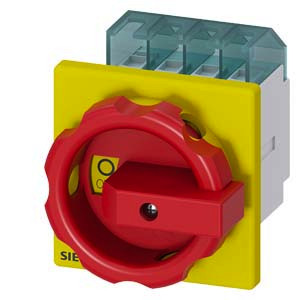 Schutzart Frontseite IP 65, Vierlochbefestigung, Betätigungselement rot/gelb SENTRON, Lasttrennschalter 3LD, Not-Aus-Schalter, 3- polig, Iu: 16 A, Betriebsleistung / bei AC-23 A bei 400V: 7,5 kW, Frontbefestigt, Drehantrieb, rot/gelb, 4-Loch Befestigung der Handhabe Haupt- und NOT-AUS-Schalter SENTRON 3LD2 für das sichere Abschalten von Lasten in vielen Bereichen, z.B. für Drehstrommotoren, Klima- und Lüftungsanlagen, in Be- und Verarbeitungsmaschinen des Maschinen- und Förderanlagenbaus, in der chemischen oder in der Nahrungsmittel- und Getränkeindustrie. Modularer Aufbau, schnelle einfache Montage von Hilfsschaltern, N-PE-Klemme oder 4. Pol. Optimale Netztrennung von 16 A bis 250 A durch Abschließbarkeit des Drehantriebes. Schutzart bis IP 65 mit gekapseltem Gehäusefür Anwendungen im Freien. Vielseitig und weltweit einsetzbar dank internationaler IEC-, UL-, CCC- sowie Schiffbau-Approbationen. Die Haupt- und NOT-AUS-Schalter 3LD sind in vielfältigen Varianten erhältlich für Frontbefestigung, Montageplatte, Hutschiene oder Verteilereinbau, wahlweise mit Direkt- oder Türkupplungs-Drehantrieb. Bei 3LD2 sind auch Varianten für Gleichstromanwendungen verfügbar. Haupt- und NOT-AUS-Schalter 3LD - Durchgängige Sicherheit für Anwender und Systeme.