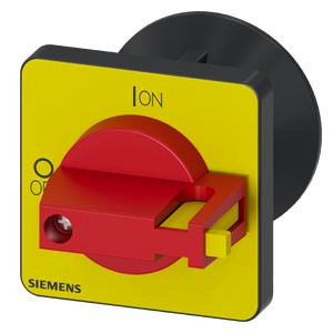 Knebel, rot/gelb 48x48 mm Frontbefestigung Zentrallochbefestigung 22,5 mm mit Kupplungsteil für Welle 6x6 mm, Zubehör für Lasttrennschalter 3LD3 Haupt- und NOT-AUS-Schalter SENTRON 3LD3 für das sichere Abschalten von Lasten in vielen Bereichen, z.B. für Drehstrommotoren, Klima- und Lüftungsanlagen, in Steuer- oder Schaltschränken insbesondere für kleine Maschinen wie Sägen, Kompressoren, Pumpen, Betonmischer, Bohrmaschinen, Fräsen oder Holzbearbeitungsmaschinen. Modularer Aufbau, schnelle einfache Montage von Hilfsschaltern, N-PE-Klemme oder 4. Pol. Optimale Netztrennung von 16 A bis 63 A durch Abschließbarkeit des Drehantriebes. Vielseitig einsetzbar dank internationaler Approbationen. Eine mechanische Baugröße für fünf elektrische Baugrößen. Die Haupt- und NOT-AUS-Schalter 3LD sind in vielfältigen Varianten erhältlich für Frontbefestigung, Montageplatte, Hutschiene oder Verteilereinbau, wahlweise mit Direkt- oder Türkupplungs-Drehantrieb. Bei 3LD2 sind auch Varianten für Gleichstromanwendungen verfügbar. Haupt- und NOT-AUS-Schalter 3LD - Durchgängige Sicherheit für Anwender und Systeme.