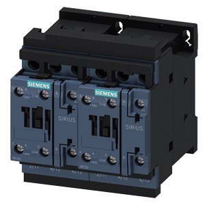 Wendekombination, AC-3e/AC-3, 32 A, 15 kW / 400 V, 3-polig, AC 230 V, 50/60 Hz, Schraubanschluss, elektrische und mechanische Verriegelung, Hilfskontakte: 2 x 1 S Wendekombination SIRIUS 3RA23 zum Schalten von Motoren inkl. Drehrichtungswechsel. Die Wendekombination 3RA23 ist eine geprüfte und werkseitig vormontierte Kombination aus zwei Schützen 3RT2 gleicher Leistung, die bereits fertig verdrahtet sowie mechanisch und elektrisch verriegelt sind. Sie sind klimafest, weltweit zugelassen (z. B. IEC und UL/CSA) und IE3/IE4 ready. Die Wendekombinationen 3RA23 sind mit AC- und DC-Betätigung in den Baugrößen S00 bis S3 erhältlich. Sie werden in Schraub- und Federzuganschlusstechnik für Montage auf Hutschiene oder Schraubbefestigung angeboten. Das Zubehör der Schütze 3RT2 ist einheitlich für alle Baugrößen und kann auch für die Schützkombinationen verwendet werden. Die Wendekombinationen 3RA23 lösen die bewährte Baureihe 3RA13 ab. Einfach, effizient, immer aktuell - der SIRIUS Systembaukasten.