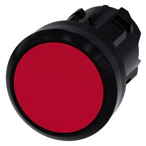 Drucktaster, 22 mm, rund, Kunststoff, rot, Druckknopf, flach tastend. Drucktaster SIRIUS ACT zur Schaltung und Steuerung elektrischer Verbraucher. Unter dem Markennamen SIRIUS ACT bietet Siemens ein einzigartiges Portfolio an Befehls- und Meldegeräten mit weltweiten Produkt-Zulassungen in vier modernen Designreihen aus robustem Echtmetall und hochwertigem Kunststoff. Das innovative Aufschnappkonzept vereinfacht die Montage so weit, dass dafür nur eine Hand und kein Spezialwerkzeug erforderlich ist. Als Montagebohrungen genügen nutfreie Löcher, da bereits ein 100%iger Verdrehschutz integriert ist. Dank der durchgängig hohen Schutzart sind die robusten Geräte industrietauglich und für den Außeneinsatz geeignet. Sogar die Reinigung mit Hochdruckstrahl ist möglich. Weder Staub, Öle noch aggressive Laugen können den zuverlässigen Betrieb stören. Neben der Standardverdrahtung können die Geräte auch über PROFINET, AS-Interface oder IO-Link an die Steuerung angebunden werden. Damit reduzieren Sie Ihren Verdrahtungsaufwand, minimieren Fehlerquellen und gewinnen mehr Flexibilität. Komfortabel unterstützt der grafische Online-Konfigurator bei Auswahl und Bestellung von Einzelgeräten, Gehäusen und Beschriftungen. Umfangreiche Dokumentation (z.B. Handbuch, 3D-Daten, Anschlussdiagramm) ist verfügbar. Lieferbare Ausführungen: mehrere Farben, beleuchtet/unbeleuchtet, mit/ohne Beschriftung, verrastende/tastende Betätigung, verschiedene Druckknopf- und Frontringhöhen. Hinweis: Einzelgerät, Halter und Module bitte extra bestellen. SIRIUS ACT - Performance in Action beim Befehlen und Melden. Einfach montiert, einfach stark, einfach perfekt.