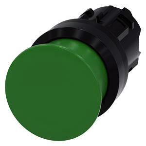 Pilzdrucktaster, 22 mm, rund, Kunststoff, grün, 30 mm, tastend Pilzdrucktaster SIRIUS ACT mit großer Handhabe zur komfortablen Betätigung mit der ganzen Hand. Unter dem Markennamen SIRIUS ACT bietet Siemens ein einzigartiges Portfolio an Befehls- und Meldegeräten mit weltweiten Produkt-Zulassungen in drei modernen Designreihen aus robustem Echtmetall und hochwertigem Kunststoff. Das innovative Aufschnappkonzept vereinfacht die Montage so weit, dass dafür nur eine Hand und kein Spezialwerkzeug erforderlich ist. Als Montagebohrungen genügen nutfreie Löcher, da bereits ein 100%iger Verdrehschutz integriert ist. Dank der durchgängig hohen Schutzart sind die robusten Geräte industrietauglich und für den Außeneinsatz geeignet. Sogar die Reinigung mit Hochdruckstrahl ist möglich. Weder Staub, Öle noch aggressive Laugen können den zuverlässigen Betrieb stören. Neben der Standardverdrahtung können die meisten Geräte auch über PROFINET, AS-Interface oder IO-Link an die Steuerung angebunden werden. Damit reduzieren Sie Ihren Verdrahtungsaufwand, minimieren Fehlerquellen und gewinnen mehr Flexibilität. Komfortabel unterstützt der grafische Online-Konfigurator bei Auswahl und Bestellung von Einzelgeräten, Gehäusen und Beschriftungen. Umfangreiche Dokumentation (z.B. Handbuch, 3D-Daten, Anschlussdiagramm) ist verfügbar. Lieferbare Ausführungen: 30/40/60 mm Pilz-Durchmesser, mehrere Farben, beleuchtet/unbeleuchtet, verrastende/tastende Betätigung, Zug-/Drehentriegelung. Hinweis: Einzelgerät, Halter und Module bitte extra bestellen. SIRIUS ACT - Performance in Action beim Befehlen und Melden. Einfach montiert, einfach stark, einfach perfekt.