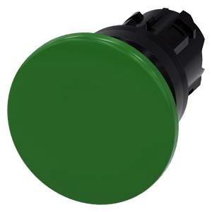 Pilzdrucktaster, 22 mm, rund, Kunststoff, grün, 40 mm, tastend Pilzdrucktaster SIRIUS ACT mit großer Handhabe zur komfortablen Betätigung mit der ganzen Hand. Unter dem Markennamen SIRIUS ACT bietet Siemens ein einzigartiges Portfolio an Befehls- und Meldegeräten mit weltweiten Produkt-Zulassungen in drei modernen Designreihen aus robustem Echtmetall und hochwertigem Kunststoff. Das innovative Aufschnappkonzept vereinfacht die Montage so weit, dass dafür nur eine Hand und kein Spezialwerkzeug erforderlich ist. Als Montagebohrungen genügen nutfreie Löcher, da bereits ein 100%iger Verdrehschutz integriert ist. Dank der durchgängig hohen Schutzart sind die robusten Geräte industrietauglich und für den Außeneinsatz geeignet. Sogar die Reinigung mit Hochdruckstrahl ist möglich. Weder Staub, Öle noch aggressive Laugen können den zuverlässigen Betrieb stören. Neben der Standardverdrahtung können die meisten Geräte auch über PROFINET, AS-Interface oder IO-Link an die Steuerung angebunden werden. Damit reduzieren Sie Ihren Verdrahtungsaufwand, minimieren Fehlerquellen und gewinnen mehr Flexibilität. Komfortabel unterstützt der grafische Online-Konfigurator bei Auswahl und Bestellung von Einzelgeräten, Gehäusen und Beschriftungen. Umfangreiche Dokumentation (z.B. Handbuch, 3D-Daten, Anschlussdiagramm) ist verfügbar. Lieferbare Ausführungen: 30/40/60 mm Pilz-Durchmesser, mehrere Farben, beleuchtet/unbeleuchtet, verrastende/tastende Betätigung, Zug-/Drehentriegelung. Hinweis: Einzelgerät, Halter und Module bitte extra bestellen. SIRIUS ACT - Performance in Action beim Befehlen und Melden. Einfach montiert, einfach stark, einfach perfekt.