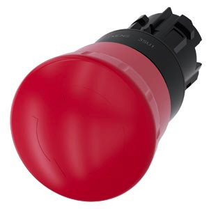 NOT-HALT-Pilzdrucktaster, 22 mm, rund, Kunststoff, rot, 40 mm, zwangsläufige Verrastung, gemäß DIN EN ISO 13850, Drehentriegelung NOT-HALT-Pilzdrucktaster SIRIUS ACT nach DIN EN ISO 13850 zur Steuerung von sicherheitsgerichteten Anwendungen mit Überlistsicherheit. Unter dem Markennamen SIRIUS ACT bietet Siemens ein einzigartiges Portfolio an Befehls- und Meldegeräten mit weltweiten Produkt-Zulassungen in drei modernen Designreihen aus robustem Echtmetall und hochwertigem Kunststoff. Das innovative Aufschnappkonzept vereinfacht die Montage so weit, dass dafür nur eine Hand und kein Spezialwerkzeug erforderlich ist. Als Montagebohrungen genügen nutfreie Löcher, da bereits ein 100%iger Verdrehschutz integriert ist. Dank der durchgängig hohen Schutzart sind die robusten Geräte industrietauglich und für den Außeneinsatz geeignet. Sogar die Reinigung mit Hochdruckstrahl ist möglich. Weder Staub, Öle noch aggressive Laugen können den zuverlässigen Betrieb stören. Neben der Standardverdrahtung können die meisten Geräte auch über PROFINET, AS-Interface oder IO-Link an die Steuerung angebunden werden. Damit reduzieren Sie Ihren Verdrahtungsaufwand, minimieren Fehlerquellen und gewinnen mehr Flexibilität. Komfortabel unterstützt der grafische Online-Konfigurator bei Auswahl und Bestellung von Einzelgeräten, Gehäusen und Beschriftungen. Umfangreiche Dokumentation (z.B. Handbuch, 3D-Daten, Anschlussdiagramm) ist verfügbar. Lieferbare Ausführungen: 30/40/60 mm Pilz-Durchmesser, beleuchtet/unbeleuchtet, Zug-/Dreh-/Schlossentriegelung. Hinweis: Einzelgerät, Halter und Module bitte extra bestellen. SIRIUS ACT - Performance in Action beim Befehlen und Melden. Einfach montiert, einfach stark, einfach perfekt.