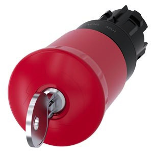 NOT-HALT-Pilzdrucktaster, 22 mm, rund, Kunststoff, rot, 40 mm, mit Schloss SIEMENS, C, Schliess-Nr. SMS1, zwangsläufige Verrastung, gemäß DIN EN ISO 13850, Schlossentriegelung NOT-HALT-Pilzdrucktaster SIRIUS ACT nach DIN EN ISO 13850 zur Steuerung von sicherheitsgerichteten Anwendungen mit Überlistsicherheit. Unter dem Markennamen SIRIUS ACT bietet Siemens ein einzigartiges Portfolio an Befehls- und Meldegeräten mit weltweiten Produkt-Zulassungen in drei modernen Designreihen aus robustem Echtmetall und hochwertigem Kunststoff. Das innovative Aufschnappkonzept vereinfacht die Montage so weit, dass dafür nur eine Hand und kein Spezialwerkzeug erforderlich ist. Als Montagebohrungen genügen nutfreie Löcher, da bereits ein 100%iger Verdrehschutz integriert ist. Dank der durchgängig hohen Schutzart sind die robusten Geräte industrietauglich und für den Außeneinsatz geeignet. Sogar die Reinigung mit Hochdruckstrahl ist möglich. Weder Staub, Öle noch aggressive Laugen können den zuverlässigen Betrieb stören. Neben der Standardverdrahtung können die meisten Geräte auch über PROFINET, AS-Interface oder IO-Link an die Steuerung angebunden werden. Damit reduzieren Sie Ihren Verdrahtungsaufwand, minimieren Fehlerquellen und gewinnen mehr Flexibilität. Komfortabel unterstützt der grafische Online-Konfigurator bei Auswahl und Bestellung von Einzelgeräten, Gehäusen und Beschriftungen. Umfangreiche Dokumentation (z.B. Handbuch, 3D-Daten, Anschlussdiagramm) ist verfügbar. Lieferbare Ausführungen: 30/40/60 mm Pilz-Durchmesser, beleuchtet/unbeleuchtet, Zug-/Dreh-/Schlossentriegelung. Hinweis: Einzelgerät, Halter und Module bitte extra bestellen. SIRIUS ACT - Performance in Action beim Befehlen und Melden. Einfach montiert, einfach stark, einfach perfekt.