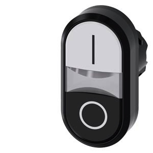 Doppeldrucktaster, 22 mm, rund, Kunststoff, weiß: I, schwarz: O, Druckknöpfe, flach Doppeldrucktaster SIRIUS ACT zur Realisierung von zwei tastenden Schaltfunktionen in einer Befehlsstelle. Unter dem Markennamen SIRIUS ACT bietet Siemens ein einzigartiges Portfolio an Befehls- und Meldegeräten mit weltweiten Produkt-Zulassungen in drei modernen Designreihen aus robustem Echtmetall und hochwertigem Kunststoff. Das innovative Aufschnappkonzept vereinfacht die Montage so weit, dass dafür nur eine Hand und kein Spezialwerkzeug erforderlich ist. Als Montagebohrungen genügen nutfreie Löcher, dabereits ein 100%iger Verdrehschutz integriert ist. Dank der durchgängig hohen Schutzart sind die robusten Geräte industrietauglich und für den Außeneinsatz geeignet. Sogar die Reinigung mit Hochdruckstrahl ist möglich. Weder Staub, Öle noch aggressive Laugen können den zuverlässigen Betrieb stören. Neben der Standardverdrahtung können die meisten Geräte auch über PROFINET, AS-Interface oder IO-Link an die Steuerung angebunden werden. Damit reduzieren Sie Ihren Verdrahtungsaufwand, minimieren Fehlerquellen und gewinnen mehr Flexibilität. Komfortabel unterstützt der grafische Online-Konfigurator bei Auswahl und Bestellung von Einzelgeräten, Gehäusen und Beschriftungen. Umfangreiche Dokumentation (z.B. Handbuch, 3D-Daten, Anschlussdiagramm) ist verfügbar. Lieferbare Ausführungen: verschiedene Farbkombinationen, beleuchtet/unbeleuchtet, mit/ohne Beschriftung, verschiedene Druckknopfhöhen. Hinweis: Einzelgerät, Halter und Module bitte extra bestellen. SIRIUS ACT - Performance in Action beim Befehlen und Melden. Einfach montiert, einfach stark, einfach perfekt.
