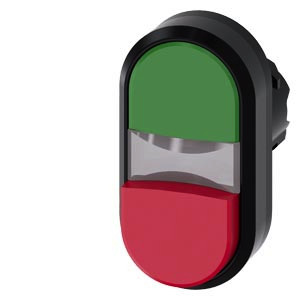 Doppeldrucktaster, 22 mm, rund, Kunststoff, grün, rot, Druckknöpfe, flach und hoch Doppeldrucktaster SIRIUS ACT zur Realisierung von zwei tastenden Schaltfunktionen in einer Befehlsstelle. Unter dem Markennamen SIRIUS ACT bietet Siemens ein einzigartiges Portfolio an Befehls- und Meldegeräten mit weltweiten Produkt-Zulassungen in drei modernen Designreihen aus robustem Echtmetall und hochwertigem Kunststoff. Das innovative Aufschnappkonzept vereinfacht die Montage so weit, dass dafür nur eine Hand und kein Spezialwerkzeug erforderlich ist. Als Montagebohrungen genügen nutfreie Löcher, dabereits ein 100%iger Verdrehschutz integriert ist. Dank der durchgängig hohen Schutzart sind die robusten Geräte industrietauglich und für den Außeneinsatz geeignet. Sogar die Reinigung mit Hochdruckstrahl ist möglich. Weder Staub, Öle noch aggressive Laugen können den zuverlässigen Betrieb stören. Neben der Standardverdrahtung können die meisten Geräte auch über PROFINET, AS-Interface oder IO-Link an die Steuerung angebunden werden. Damit reduzieren Sie Ihren Verdrahtungsaufwand, minimieren Fehlerquellen und gewinnen mehr Flexibilität. Komfortabel unterstützt der grafische Online-Konfigurator bei Auswahl und Bestellung von Einzelgeräten, Gehäusen und Beschriftungen. Umfangreiche Dokumentation (z.B. Handbuch, 3D-Daten, Anschlussdiagramm) ist verfügbar. Lieferbare Ausführungen: verschiedene Farbkombinationen, beleuchtet/unbeleuchtet, mit/ohne Beschriftung, verschiedene Druckknopfhöhen. Hinweis: Einzelgerät, Halter und Module bitte extra bestellen. SIRIUS ACT - Performance in Action beim Befehlen und Melden. Einfach montiert, einfach stark, einfach perfekt.