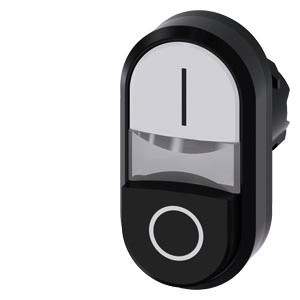 Doppeldrucktaster, 22 mm, rund, Kunststoff, weiß: I, schwarz: O, Druckknöpfe, flach und hoch Doppeldrucktaster SIRIUS ACT zur Realisierung von zwei tastenden Schaltfunktionen in einer Befehlsstelle. Unter dem Markennamen SIRIUS ACT bietet Siemens ein einzigartiges Portfolio an Befehls- und Meldegeräten mit weltweiten Produkt-Zulassungen in drei modernen Designreihen aus robustem Echtmetall und hochwertigem Kunststoff. Das innovative Aufschnappkonzept vereinfacht die Montage so weit, dass dafür nur eine Hand und kein Spezialwerkzeug erforderlich ist. Als Montagebohrungen genügen nutfreie Löcher, dabereits ein 100%iger Verdrehschutz integriert ist. Dank der durchgängig hohen Schutzart sind die robusten Geräte industrietauglich und für den Außeneinsatz geeignet. Sogar die Reinigung mit Hochdruckstrahl ist möglich. Weder Staub, Öle noch aggressive Laugen können den zuverlässigen Betrieb stören. Neben der Standardverdrahtung können die meisten Geräte auch über PROFINET, AS-Interface oder IO-Link an die Steuerung angebunden werden. Damit reduzieren Sie Ihren Verdrahtungsaufwand, minimieren Fehlerquellen und gewinnen mehr Flexibilität. Komfortabel unterstützt der grafische Online-Konfigurator bei Auswahl und Bestellung von Einzelgeräten, Gehäusen und Beschriftungen. Umfangreiche Dokumentation (z.B. Handbuch, 3D-Daten, Anschlussdiagramm) ist verfügbar. Lieferbare Ausführungen: verschiedene Farbkombinationen, beleuchtet/unbeleuchtet, mit/ohne Beschriftung, verschiedene Druckknopfhöhen. Hinweis: Einzelgerät, Halter und Module bitte extra bestellen. SIRIUS ACT - Performance in Action beim Befehlen und Melden. Einfach montiert, einfach stark, einfach perfekt.