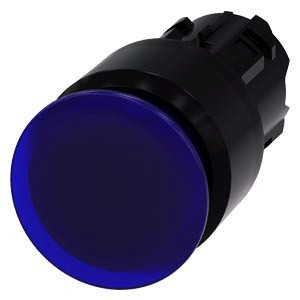 Leuchtpilzdrucktaster, 22 mm, rund, Kunststoff, blau, 30 mm, verrastend, Zugentriegelung Pilzdrucktaster SIRIUS ACT mit großer Handhabe zur komfortablen Betätigung mit der ganzen Hand. Unter dem Markennamen SIRIUS ACT bietet Siemens ein einzigartiges Portfolio an Befehls- und Meldegeräten mit weltweiten Produkt-Zulassungen in drei modernen Designreihen aus robustem Echtmetall und hochwertigem Kunststoff. Das innovative Aufschnappkonzept vereinfacht die Montage so weit, dass dafür nur eine Hand und kein Spezialwerkzeug erforderlich ist. Als Montagebohrungen genügen nutfreie Löcher, da bereits ein 100%iger Verdrehschutz integriert ist. Dank der durchgängig hohen Schutzart sind die robusten Geräte industrietauglich und für den Außeneinsatz geeignet. Sogar die Reinigung mit Hochdruckstrahl ist möglich. Weder Staub, Öle noch aggressive Laugen können den zuverlässigen Betrieb stören. Neben der Standardverdrahtung können die meisten Geräte auch über PROFINET, AS-Interface oder IO-Link an die Steuerung angebunden werden. Damit reduzieren Sie Ihren Verdrahtungsaufwand, minimieren Fehlerquellen und gewinnen mehr Flexibilität. Komfortabel unterstützt der grafische Online-Konfigurator bei Auswahl und Bestellung von Einzelgeräten, Gehäusen und Beschriftungen. Umfangreiche Dokumentation (z.B. Handbuch, 3D-Daten, Anschlussdiagramm) ist verfügbar. Lieferbare Ausführungen: 30/40/60 mm Pilz-Durchmesser, mehrere Farben, beleuchtet/unbeleuchtet, verrastende/tastende Betätigung, Zug-/Drehentriegelung. Hinweis: Einzelgerät, Halter und Module bitte extra bestellen. SIRIUS ACT - Performance in Action beim Befehlen und Melden. Einfach montiert, einfach stark, einfach perfekt.