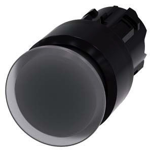 Leuchtpilzdrucktaster, 22 mm, rund, Kunststoff, klar, 30 mm, verrastend, Zugentriegelung Pilzdrucktaster SIRIUS ACT mit großer Handhabe zur komfortablen Betätigung mit der ganzen Hand. Unter dem Markennamen SIRIUS ACT bietet Siemens ein einzigartiges Portfolio an Befehls- und Meldegeräten mit weltweiten Produkt-Zulassungen in drei modernen Designreihen aus robustem Echtmetall und hochwertigem Kunststoff. Das innovative Aufschnappkonzept vereinfacht die Montage so weit, dass dafür nur eine Hand und kein Spezialwerkzeug erforderlich ist. Als Montagebohrungen genügen nutfreie Löcher, da bereits ein 100%iger Verdrehschutz integriert ist. Dank der durchgängig hohen Schutzart sind die robusten Geräte industrietauglich und für den Außeneinsatz geeignet. Sogar die Reinigung mit Hochdruckstrahl ist möglich. Weder Staub, Öle noch aggressive Laugen können den zuverlässigen Betrieb stören. Neben der Standardverdrahtung können die meisten Geräte auch über PROFINET, AS-Interface oder IO-Link an die Steuerung angebunden werden. Damit reduzieren Sie Ihren Verdrahtungsaufwand, minimieren Fehlerquellen und gewinnen mehr Flexibilität. Komfortabel unterstützt der grafische Online-Konfigurator bei Auswahl und Bestellung von Einzelgeräten, Gehäusen und Beschriftungen. Umfangreiche Dokumentation (z.B. Handbuch, 3D-Daten, Anschlussdiagramm) ist verfügbar. Lieferbare Ausführungen: 30/40/60 mm Pilz-Durchmesser, mehrere Farben, beleuchtet/unbeleuchtet, verrastende/tastende Betätigung, Zug-/Drehentriegelung. Hinweis: Einzelgerät, Halter und Module bitte extra bestellen. SIRIUS ACT - Performance in Action beim Befehlen und Melden. Einfach montiert, einfach stark, einfach perfekt.