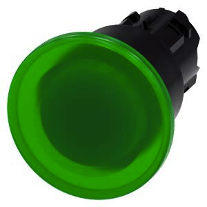 Leuchtpilzdrucktaster, 22 mm, rund, Kunststoff, grün, 40 mm, verrastend, Zugentriegelung Pilzdrucktaster SIRIUS ACT mit großer Handhabe zur komfortablen Betätigung mit der ganzen Hand. Unter dem Markennamen SIRIUS ACT bietet Siemens ein einzigartiges Portfolio an Befehls- und Meldegeräten mit weltweiten Produkt-Zulassungen in drei modernen Designreihen aus robustem Echtmetall und hochwertigem Kunststoff. Das innovative Aufschnappkonzept vereinfacht die Montage so weit, dass dafür nur eine Hand und kein Spezialwerkzeug erforderlich ist. Als Montagebohrungen genügen nutfreie Löcher, da bereits ein 100%iger Verdrehschutz integriert ist. Dank der durchgängig hohen Schutzart sind die robusten Geräte industrietauglich und für den Außeneinsatz geeignet. Sogar die Reinigung mit Hochdruckstrahl ist möglich. Weder Staub, Öle noch aggressive Laugen können den zuverlässigen Betrieb stören. Neben der Standardverdrahtung können die meisten Geräte auch über PROFINET, AS-Interface oder IO-Link an die Steuerung angebunden werden. Damit reduzieren Sie Ihren Verdrahtungsaufwand, minimieren Fehlerquellen und gewinnen mehr Flexibilität. Komfortabel unterstützt der grafische Online-Konfigurator bei Auswahl und Bestellung von Einzelgeräten, Gehäusen und Beschriftungen. Umfangreiche Dokumentation (z.B. Handbuch, 3D-Daten, Anschlussdiagramm) ist verfügbar. Lieferbare Ausführungen: 30/40/60 mm Pilz-Durchmesser, mehrere Farben, beleuchtet/unbeleuchtet, verrastende/tastende Betätigung, Zug-/Drehentriegelung. Hinweis: Einzelgerät, Halter und Module bitte extra bestellen. SIRIUS ACT - Performance in Action beim Befehlen und Melden. Einfach montiert, einfach stark, einfach perfekt.