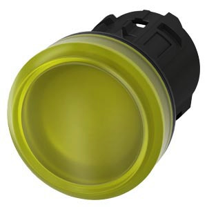 Leuchtmelder, 22 mm, rund, Kunststoff, gelb, Linse, glatt Leuchtmelder SIRIUS ACT zur Signalisierung von Schaltzuständen oder Störungen in Anlagen mit brillianter Leuchtkraft dank energieeffizienter LED-Technologie. Unter dem Markennamen SIRIUS ACT bietet Siemens ein einzigartiges Portfolio an Befehls- und Meldegeräten mit weltweiten Produkt-Zulassungen in drei modernen Designreihen aus robustem Echtmetall und hochwertigem Kunststoff. Das innovative Aufschnappkonzept vereinfacht die Montage so weit, dass dafür nur eine Hand und kein Spezialwerkzeug erforderlich ist. Als Montagebohrungen genügen nutfreie Löcher, da bereits ein 100%iger Verdrehschutz integriert ist. Dank der durchgängig hohen Schutzart sind die robusten Geräte industrietauglich und für den Außeneinsatz geeignet. Sogar die Reinigung mit Hochdruckstrahl ist möglich. Weder Staub, Öle noch aggressive Laugen können den zuverlässigen Betrieb stören. Neben der Standardverdrahtung können die meisten Geräte auch über PROFINET, AS-Interface oder IO-Link an die Steuerung angebunden werden. Damit reduzieren Sie Ihren Verdrahtungsaufwand, minimieren Fehlerquellen und gewinnen mehr Flexibilität. Komfortabel unterstützt der grafische Online-Konfigurator bei Auswahl und Bestellung von Einzelgeräten, Gehäusen und Beschriftungen. Umfangreiche Dokumentation (z.B. Handbuch, 3D-Daten, Anschlussdiagramm) ist verfügbar. Lieferbare Ausführungen: mehrere Farben, verschiedene Spannungsvarianten. Hinweis: Einzelgerät, Halter und Module bitte extra bestellen. SIRIUS ACT - Performance in Action beim Befehlen und Melden. Einfach montiert, einfach stark, einfach perfekt.
