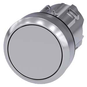 Drucktaster, 22 mm, rund, Metall, hochglanz, grau, Druckknopf, flach tastend Drucktaster SIRIUS ACT zur Schaltung und Steuerung elektrischer Verbraucher. Unter dem Markennamen SIRIUS ACT bietet Siemens ein einzigartiges Portfolio an Befehls- und Meldegeräten mit weltweiten Produkt-Zulassungen in drei modernen Designreihen aus robustem Echtmetall und hochwertigem Kunststoff. Das innovative Aufschnappkonzept vereinfacht die Montage so weit, dass dafür nur eine Hand und kein Spezialwerkzeug erforderlich ist. Als Montagebohrungen genügen nutfreie Löcher, da bereits ein 100%iger Verdrehschutz integriert ist. Dank der durchgängig hohen Schutzart sind die robusten Geräte industrietauglich und für den Außeneinsatz geeignet. Sogar die Reinigung mit Hochdruckstrahl ist möglich. Weder Staub, Öle noch aggressive Laugen können den zuverlässigen Betrieb stören. Neben der Standardverdrahtung können die meisten Geräte auch über PROFINET, AS-Interface oder IO-Link an die Steuerung angebunden werden. Damit reduzieren Sie Ihren Verdrahtungsaufwand, minimieren Fehlerquellen und gewinnen mehr Flexibilität. Komfortabel unterstützt der grafische Online-Konfigurator bei Auswahl und Bestellung von Einzelgeräten, Gehäusen und Beschriftungen. Umfangreiche Dokumentation (z.B. Handbuch, 3D-Daten, Anschlussdiagramm) ist verfügbar. Lieferbare Ausführungen: mehrere Farben, beleuchtet/unbeleuchtet, mit/ohne Beschriftung, verrastende/tastende Betätigung, verschiedene Druckknopf- und Frontringhöhen. Hinweis: Einzelgerät, Halter und Module bitte extra bestellen. SIRIUS ACT - Performance in Action beim Befehlen und Melden. Einfach montiert, einfach stark, einfach perfekt.