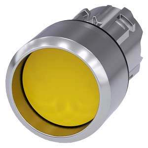 Drucktaster, 22 mm, rund, Metall, hochglanz, gelb, Frontring, hoch, tastend Drucktaster SIRIUS ACT zur Schaltung und Steuerung elektrischer Verbraucher. Unter dem Markennamen SIRIUS ACT bietet Siemens ein einzigartiges Portfolio an Befehls- und Meldegeräten mit weltweiten Produkt-Zulassungen in drei modernen Designreihen aus robustem Echtmetall und hochwertigem Kunststoff. Das innovative Aufschnappkonzept vereinfacht die Montage so weit, dass dafür nur eine Hand und kein Spezialwerkzeug erforderlich ist. Als Montagebohrungen genügen nutfreie Löcher, da bereits ein 100%iger Verdrehschutz integriert ist. Dank der durchgängig hohen Schutzart sind die robusten Geräte industrietauglich und für den Außeneinsatz geeignet. Sogar die Reinigung mit Hochdruckstrahl ist möglich. Weder Staub, Öle noch aggressive Laugen können den zuverlässigen Betrieb stören. Neben der Standardverdrahtung können die meisten Geräte auch über PROFINET, AS-Interface oder IO-Link an die Steuerung angebunden werden. Damit reduzieren Sie Ihren Verdrahtungsaufwand, minimieren Fehlerquellen und gewinnen mehr Flexibilität. Komfortabel unterstützt der grafische Online-Konfigurator bei Auswahl und Bestellung von Einzelgeräten, Gehäusen und Beschriftungen. Umfangreiche Dokumentation (z.B. Handbuch, 3D-Daten, Anschlussdiagramm) ist verfügbar. Lieferbare Ausführungen: mehrere Farben, beleuchtet/unbeleuchtet, mit/ohne Beschriftung, verrastende/tastende Betätigung, verschiedene Druckknopf- und Frontringhöhen. Hinweis: Einzelgerät, Halter und Module bitte extra bestellen. SIRIUS ACT - Performance in Action beim Befehlen und Melden. Einfach montiert, einfach stark, einfach perfekt.