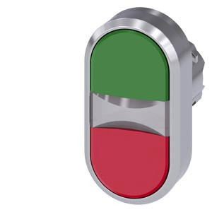 Doppeldrucktaster, 22 mm, rund, Metall, hochglanz, grün, rot, Druckknöpfe, flach Doppeldrucktaster SIRIUS ACT zur Realisierung von zwei tastenden Schaltfunktionen in einer Befehlsstelle. Unter dem Markennamen SIRIUS ACT bietet Siemens ein einzigartiges Portfolio an Befehls- und Meldegeräten mit weltweiten Produkt-Zulassungen in drei modernen Designreihen aus robustem Echtmetall und hochwertigem Kunststoff. Das innovative Aufschnappkonzept vereinfacht die Montage so weit, dass dafür nur eine Hand und kein Spezialwerkzeug erforderlich ist. Als Montagebohrungen genügen nutfreie Löcher, dabereits ein 100%iger Verdrehschutz integriert ist. Dank der durchgängig hohen Schutzart sind die robusten Geräte industrietauglich und für den Außeneinsatz geeignet. Sogar die Reinigung mit Hochdruckstrahl ist möglich. Weder Staub, Öle noch aggressive Laugen können den zuverlässigen Betrieb stören. Neben der Standardverdrahtung können die meisten Geräte auch über PROFINET, AS-Interface oder IO-Link an die Steuerung angebunden werden. Damit reduzieren Sie Ihren Verdrahtungsaufwand, minimieren Fehlerquellen und gewinnen mehr Flexibilität. Komfortabel unterstützt der grafische Online-Konfigurator bei Auswahl und Bestellung von Einzelgeräten, Gehäusen und Beschriftungen. Umfangreiche Dokumentation (z.B. Handbuch, 3D-Daten, Anschlussdiagramm) ist verfügbar. Lieferbare Ausführungen: verschiedene Farbkombinationen, beleuchtet/unbeleuchtet, mit/ohne Beschriftung, verschiedene Druckknopfhöhen. Hinweis: Einzelgerät, Halter und Module bitte extra bestellen. SIRIUS ACT - Performance in Action beim Befehlen und Melden. Einfach montiert, einfach stark, einfach perfekt.