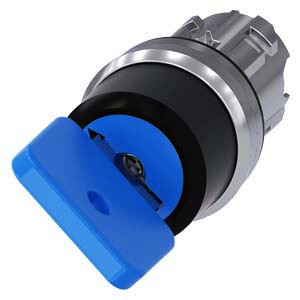 Schlüsselschalter O.M.R, 22 mm, rund, Metall, hochglanz, Schließ-Nr. 73038, blau, mit 2 Schlüsseln, 2 Schaltstellungen O-I, verrastend, Schaltwinkel 90°, 10:30h/13:30h, Schlüsselabzug O Schlüsselschalter SIRIUS ACT für einen höheren Anspruch an Zugangssicherheit. Unter dem Markennamen SIRIUS ACT bietet Siemens ein einzigartiges Portfolio an Befehls- und Meldegeräten mit weltweiten Produkt-Zulassungen in drei modernen Designreihen aus robustem Echtmetall und hochwertigem Kunststoff. Das innovative Aufschnappkonzept vereinfacht die Montage so weit, dass dafür nur eine Hand und kein Spezialwerkzeug erforderlich ist. Als Montagebohrungen genügen nutfreie Löcher, da bereits ein 100%iger Verdrehschutz integriert ist. Dank der durchgängig hohen Schutzart sind die robusten Geräte industrietauglich und für den Außeneinsatz geeignet. Sogar die Reinigung mit Hochdruckstrahl ist möglich. Weder Staub, Öle noch aggressive Laugen können den zuverlässigen Betrieb stören. Neben der Standardverdrahtung können die meisten Geräte auch über PROFINET, AS-Interface oder IO-Link an die Steuerung angebunden werden. Damit reduzieren Sie Ihren Verdrahtungsaufwand, minimieren Fehlerquellen und gewinnen mehr Flexibilität. Komfortabel unterstützt der grafische Online-Konfigurator bei Auswahl und Bestellung von Einzelgeräten, Gehäusen und Beschriftungen. Umfangreiche Dokumentation (z.B. Handbuch, 3D-Daten, Anschlussdiagramm) ist verfügbar. Lieferbare Ausführungen: verschiedene Schließsysteme (Siemens, C, Siemens, B, RONIS, OMR), 2/3 Schaltstellungen, verrastende/tastende Betätigung, verschiedene Schlüsselabzugstellungen. Hinweis: Einzelgerät, Halter und Module bitte extra bestellen. SIRIUS ACT - Performance in Action beim Befehlen und Melden. Einfach montiert, einfach stark, einfach perfekt.