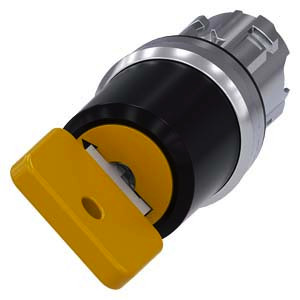 Schlüsselschalter O.M.R, 22 mm, rund, Metall, hochglanz, Schließ-Nr. 73033, gelb, mit 2 Schlüsseln, 2 Schaltstellungen O-I, verrastend, Schaltwinkel 90°, 10:30h/13:30h, Schlüsselabzug O+I Schlüsselschalter SIRIUS ACT für einen höheren Anspruch an Zugangssicherheit. Unter dem Markennamen SIRIUS ACT bietet Siemens ein einzigartiges Portfolio an Befehls- und Meldegeräten mit weltweiten Produkt-Zulassungen in drei modernen Designreihen aus robustem Echtmetall und hochwertigem Kunststoff. Das innovative Aufschnappkonzept vereinfacht die Montage so weit, dass dafür nur eine Hand und kein Spezialwerkzeug erforderlich ist. Als Montagebohrungen genügen nutfreie Löcher, da bereits ein 100%iger Verdrehschutz integriert ist. Dank der durchgängig hohen Schutzart sind die robusten Geräte industrietauglich und für den Außeneinsatz geeignet. Sogar die Reinigung mit Hochdruckstrahl ist möglich. Weder Staub, Öle noch aggressive Laugen können den zuverlässigen Betrieb stören. Neben der Standardverdrahtung können die meisten Geräte auch über PROFINET, AS-Interface oder IO-Link an die Steuerung angebunden werden. Damit reduzieren Sie Ihren Verdrahtungsaufwand, minimieren Fehlerquellen und gewinnen mehr Flexibilität. Komfortabel unterstützt der grafische Online-Konfigurator bei Auswahl und Bestellung von Einzelgeräten, Gehäusen und Beschriftungen. Umfangreiche Dokumentation (z.B. Handbuch, 3D-Daten, Anschlussdiagramm) ist verfügbar. Lieferbare Ausführungen: verschiedene Schließsysteme (Siemens, C, Siemens, B, RONIS, OMR), 2/3 Schaltstellungen, verrastende/tastende Betätigung, verschiedene Schlüsselabzugstellungen. Hinweis: Einzelgerät, Halter und Module bitte extra bestellen. SIRIUS ACT - Performance in Action beim Befehlen und Melden. Einfach montiert, einfach stark, einfach perfekt.