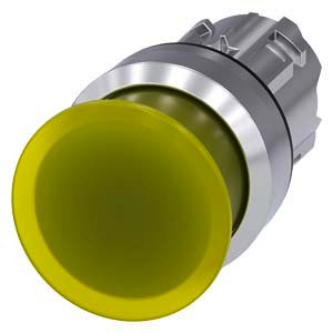 Leuchtpilzdrucktaster, 22 mm, rund, Metall, hochglanz, gelb, 30 mm, tastend Pilzdrucktaster SIRIUS ACT mit großer Handhabe zur komfortablen Betätigung mit der ganzen Hand. Unter dem Markennamen SIRIUS ACT bietet Siemens ein einzigartiges Portfolio an Befehls- und Meldegeräten mit weltweiten Produkt-Zulassungen in drei modernen Designreihen aus robustem Echtmetall und hochwertigem Kunststoff. Das innovative Aufschnappkonzept vereinfacht die Montage so weit, dass dafür nur eine Hand und kein Spezialwerkzeug erforderlich ist. Als Montagebohrungen genügen nutfreie Löcher, da bereits ein 100%iger Verdrehschutz integriert ist. Dank der durchgängig hohen Schutzart sind die robusten Geräte industrietauglich und für den Außeneinsatz geeignet. Sogar die Reinigung mit Hochdruckstrahl ist möglich. Weder Staub, Öle noch aggressive Laugen können den zuverlässigen Betrieb stören. Neben der Standardverdrahtung können die meisten Geräte auch über PROFINET, AS-Interface oder IO-Link an die Steuerung angebunden werden. Damit reduzieren Sie Ihren Verdrahtungsaufwand, minimieren Fehlerquellen und gewinnen mehr Flexibilität. Komfortabel unterstützt der grafische Online-Konfigurator bei Auswahl und Bestellung von Einzelgeräten, Gehäusen und Beschriftungen. Umfangreiche Dokumentation (z.B. Handbuch, 3D-Daten, Anschlussdiagramm) ist verfügbar. Lieferbare Ausführungen: 30/40/60 mm Pilz-Durchmesser, mehrere Farben, beleuchtet/unbeleuchtet, verrastende/tastende Betätigung, Zug-/Drehentriegelung. Hinweis: Einzelgerät, Halter und Module bitte extra bestellen. SIRIUS ACT - Performance in Action beim Befehlen und Melden. Einfach montiert, einfach stark, einfach perfekt.