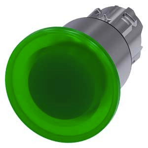 Leuchtpilzdrucktaster, 22 mm, rund, Metall, hochglanz, grün, 40 mm, 3 Schaltstellungen, verrastet nach Eindrücken, entrastet durch Zugentriegelung in die Mittelstellung, nach Herausziehen des Knopfes Rückzug in die Mittelstellung Pilzdrucktaster SIRIUS ACT mit großer Handhabe zur komfortablen Betätigung mit der ganzen Hand. Unter dem Markennamen SIRIUS ACT bietet Siemens ein einzigartiges Portfolio an Befehls- und Meldegeräten mit weltweiten Produkt-Zulassungen in drei modernen Designreihen aus robustem Echtmetall und hochwertigem Kunststoff. Das innovative Aufschnappkonzept vereinfacht die Montage so weit, dass dafür nur eine Hand und kein Spezialwerkzeug erforderlich ist. Als Montagebohrungen genügen nutfreie Löcher, da bereits ein 100%iger Verdrehschutz integriert ist. Dank der durchgängig hohen Schutzart sind die robusten Geräte industrietauglich und für den Außeneinsatz geeignet. Sogar die Reinigung mit Hochdruckstrahl ist möglich. Weder Staub, Öle noch aggressive Laugen können den zuverlässigen Betrieb stören. Neben der Standardverdrahtung können die meisten Geräte auch über PROFINET, AS-Interface oder IO-Link an die Steuerung angebunden werden. Damit reduzieren Sie Ihren Verdrahtungsaufwand, minimieren Fehlerquellen und gewinnen mehr Flexibilität. Komfortabel unterstützt der grafische Online-Konfigurator bei Auswahl und Bestellung von Einzelgeräten, Gehäusen und Beschriftungen. Umfangreiche Dokumentation (z.B. Handbuch, 3D-Daten, Anschlussdiagramm) ist verfügbar. Lieferbare Ausführungen: 30/40/60 mm Pilz-Durchmesser, mehrere Farben, beleuchtet/unbeleuchtet, verrastende/tastende Betätigung, Zug-/Drehentriegelung. Hinweis: Einzelgerät, Halter und Module bitte extra bestellen. SIRIUS ACT - Performance in Action beim Befehlen und Melden. Einfach montiert, einfach stark, einfach perfekt.