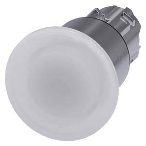 Leuchtpilzdrucktaster, 22 mm, rund, Metall, hochglanz, weiß, 40 mm, 3 Schaltstellungen, nach Eindrücken Rückzug in die Mittelstellung, nach Herausziehen des Knopfes Rückzug in die Mittelstellung Pilzdrucktaster SIRIUS ACT mit großer Handhabe zur komfortablen Betätigung mit der ganzen Hand. Unter dem Markennamen SIRIUS ACT bietet Siemens ein einzigartiges Portfolio an Befehls- und Meldegeräten mit weltweiten Produkt-Zulassungen in drei modernen Designreihen aus robustem Echtmetall und hochwertigem Kunststoff. Das innovative Aufschnappkonzept vereinfacht die Montage so weit, dass dafür nur eine Hand und kein Spezialwerkzeug erforderlich ist. Als Montagebohrungen genügen nutfreie Löcher, da bereits ein 100%iger Verdrehschutz integriert ist. Dank der durchgängig hohen Schutzart sind die robusten Geräte industrietauglich und für den Außeneinsatz geeignet. Sogar die Reinigung mit Hochdruckstrahl ist möglich. Weder Staub, Öle noch aggressive Laugen können den zuverlässigen Betrieb stören. Neben der Standardverdrahtung können die meisten Geräte auch über PROFINET, AS-Interface oder IO-Link an die Steuerung angebunden werden. Damit reduzieren Sie Ihren Verdrahtungsaufwand, minimieren Fehlerquellen und gewinnen mehr Flexibilität. Komfortabel unterstützt der grafische Online-Konfigurator bei Auswahl und Bestellung von Einzelgeräten, Gehäusen und Beschriftungen. Umfangreiche Dokumentation (z.B. Handbuch, 3D-Daten, Anschlussdiagramm) ist verfügbar. Lieferbare Ausführungen: 30/40/60 mm Pilz-Durchmesser, mehrere Farben, beleuchtet/unbeleuchtet, verrastende/tastende Betätigung, Zug-/Drehentriegelung. Hinweis: Einzelgerät, Halter und Module bitte extra bestellen. SIRIUS ACT - Performance in Action beim Befehlen und Melden. Einfach montiert, einfach stark, einfach perfekt.
