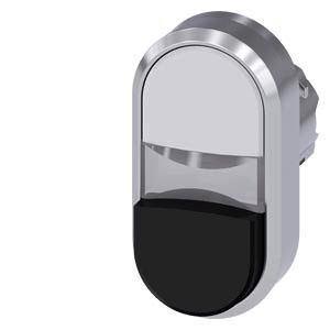 beleuchteter Doppeldrucktaster, 22 mm, rund, Metall, hochglanz, weiß, schwarz, Druckknöpfe, flach und hoch Doppeldrucktaster SIRIUS ACT zur Realisierung von zwei tastenden Schaltfunktionen in einer Befehlsstelle. Unter dem Markennamen SIRIUS ACT bietet Siemens ein einzigartiges Portfolio an Befehls- und Meldegeräten mit weltweiten Produkt-Zulassungen in drei modernen Designreihen aus robustem Echtmetall und hochwertigem Kunststoff. Das innovative Aufschnappkonzept vereinfacht die Montage so weit, dass dafür nur eine Hand und kein Spezialwerkzeug erforderlich ist. Als Montagebohrungen genügen nutfreie Löcher, dabereits ein 100%iger Verdrehschutz integriert ist. Dank der durchgängig hohen Schutzart sind die robusten Geräte industrietauglich und für den Außeneinsatz geeignet. Sogar die Reinigung mit Hochdruckstrahl ist möglich. Weder Staub, Öle noch aggressive Laugen können den zuverlässigen Betrieb stören. Neben der Standardverdrahtung können die meisten Geräte auch über PROFINET, AS-Interface oder IO-Link an die Steuerung angebunden werden. Damit reduzieren Sie Ihren Verdrahtungsaufwand, minimieren Fehlerquellen und gewinnen mehr Flexibilität. Komfortabel unterstützt der grafische Online-Konfigurator bei Auswahl und Bestellung von Einzelgeräten, Gehäusen und Beschriftungen. Umfangreiche Dokumentation (z.B. Handbuch, 3D-Daten, Anschlussdiagramm) ist verfügbar. Lieferbare Ausführungen: verschiedene Farbkombinationen, beleuchtet/unbeleuchtet, mit/ohne Beschriftung, verschiedene Druckknopfhöhen. Hinweis: Einzelgerät, Halter und Module bitte extra bestellen. SIRIUS ACT - Performance in Action beim Befehlen und Melden. Einfach montiert, einfach stark, einfach perfekt.