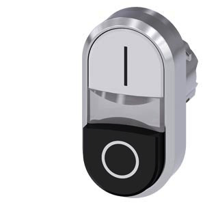 beleuchteter Doppeldrucktaster, 22 mm, rund, Metall, hochglanz, weiß: I, schwarz: O, Druckknöpfe, flach und hoch Doppeldrucktaster SIRIUS ACT zur Realisierung von zwei tastenden Schaltfunktionen in einer Befehlsstelle. Unter dem Markennamen SIRIUS ACT bietet Siemens ein einzigartiges Portfolio an Befehls- und Meldegeräten mit weltweiten Produkt-Zulassungen in drei modernen Designreihen aus robustem Echtmetall und hochwertigem Kunststoff. Das innovative Aufschnappkonzept vereinfacht die Montage so weit, dass dafür nur eine Hand und kein Spezialwerkzeug erforderlich ist. Als Montagebohrungen genügen nutfreie Löcher, dabereits ein 100%iger Verdrehschutz integriert ist. Dank der durchgängig hohen Schutzart sind die robusten Geräte industrietauglich und für den Außeneinsatz geeignet. Sogar die Reinigung mit Hochdruckstrahl ist möglich. Weder Staub, Öle noch aggressive Laugen können den zuverlässigen Betrieb stören. Neben der Standardverdrahtung können die meisten Geräte auch über PROFINET, AS-Interface oder IO-Link an die Steuerung angebunden werden. Damit reduzieren Sie Ihren Verdrahtungsaufwand, minimieren Fehlerquellen und gewinnen mehr Flexibilität. Komfortabel unterstützt der grafische Online-Konfigurator bei Auswahl und Bestellung von Einzelgeräten, Gehäusen und Beschriftungen. Umfangreiche Dokumentation (z.B. Handbuch, 3D-Daten, Anschlussdiagramm) ist verfügbar. Lieferbare Ausführungen: verschiedene Farbkombinationen, beleuchtet/unbeleuchtet, mit/ohne Beschriftung, verschiedene Druckknopfhöhen. Hinweis: Einzelgerät, Halter und Module bitte extra bestellen. SIRIUS ACT - Performance in Action beim Befehlen und Melden. Einfach montiert, einfach stark, einfach perfekt.