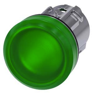 Leuchtmelder, 22 mm, rund, Metall, hochglanz, grün, Linse, glatt Leuchtmelder SIRIUS ACT zur Signalisierung von Schaltzuständen oder Störungen in Anlagen mit brillianter Leuchtkraft dank energieeffizienter LED-Technologie. Unter dem Markennamen SIRIUS ACT bietet Siemens ein einzigartiges Portfolio an Befehls- und Meldegeräten mit weltweiten Produkt-Zulassungen in drei modernen Designreihen aus robustem Echtmetall und hochwertigem Kunststoff. Das innovative Aufschnappkonzept vereinfacht die Montage so weit, dass dafür nur eine Hand und kein Spezialwerkzeug erforderlich ist. Als Montagebohrungen genügen nutfreie Löcher, da bereits ein 100%iger Verdrehschutz integriert ist. Dank der durchgängig hohen Schutzart sind die robusten Geräte industrietauglich und für den Außeneinsatz geeignet. Sogar die Reinigung mit Hochdruckstrahl ist möglich. Weder Staub, Öle noch aggressive Laugen können den zuverlässigen Betrieb stören. Neben der Standardverdrahtung können die meisten Geräte auch über PROFINET, AS-Interface oder IO-Link an die Steuerung angebunden werden. Damit reduzieren Sie Ihren Verdrahtungsaufwand, minimieren Fehlerquellen und gewinnen mehr Flexibilität. Komfortabel unterstützt der grafische Online-Konfigurator bei Auswahl und Bestellung von Einzelgeräten, Gehäusen und Beschriftungen. Umfangreiche Dokumentation (z.B. Handbuch, 3D-Daten, Anschlussdiagramm) ist verfügbar. Lieferbare Ausführungen: mehrere Farben, verschiedene Spannungsvarianten. Hinweis: Einzelgerät, Halter und Module bitte extra bestellen. SIRIUS ACT - Performance in Action beim Befehlen und Melden. Einfach montiert, einfach stark, einfach perfekt.