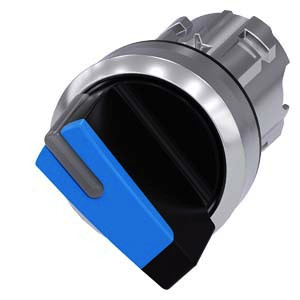 Knebelschalter, beleuchtbar, 22 mm, rund, Metall, hochglanz, blau, Knebel, kurz, 2 Schaltstellungen O<I, tastend, Schaltwinkel 45°, 10:30h/12h Knebelschalter SIRIUS ACT zur Schaltung und Steuerung elektrischer Verbraucher. Unter dem Markennamen SIRIUS ACT bietet Siemens ein einzigartiges Portfolio an Befehls- und Meldegeräten mit weltweiten Produkt-Zulassungen in drei modernen Designreihen aus robustem Echtmetall und hochwertigem Kunststoff. Das innovative Aufschnappkonzept vereinfacht die Montage so weit, dass dafür nur eine Hand und kein Spezialwerkzeug erforderlich ist. Als Montagebohrungen genügen nutfreie Löcher, da bereits ein 100%iger Verdrehschutz integriert ist. Dank der durchgängig hohen Schutzart sind die robusten Geräte industrietauglich und für den Außeneinsatz geeignet. Sogar die Reinigung mit Hochdruckstrahl ist möglich. Weder Staub, Öle noch aggressive Laugen können den zuverlässigen Betrieb stören. Neben der Standardverdrahtung können die meisten Geräte auch über PROFINET, AS-Interface oder IO-Link an die Steuerung angebunden werden. Damit reduzieren Sie Ihren Verdrahtungsaufwand, minimieren Fehlerquellen und gewinnen mehr Flexibilität. Komfortabel unterstützt der grafische Online-Konfigurator bei Auswahl und Bestellung von Einzelgeräten, Gehäusen und Beschriftungen. Umfangreiche Dokumentation (z.B. Handbuch, 3D-Daten, Anschlussdiagramm) ist verfügbar. Lieferbare Ausführungen: mehrere Farben, 2-4 Schaltstellungen, kurzer/langer Knebel oder Drehknopf, beleuchtet/unbeleuchtet (Beleuchtung auch nachrüstbar), verrastende/tastende Betätigung. Hinweis: Einzelgerät, Halter und Module bitte extra bestellen. SIRIUS ACT - Performance in Actionbeim Befehlen und Melden. Einfach montiert, einfach stark, einfach perfekt.