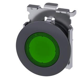 Leuchtdrucktaster, 30 mm, rund, Metall, matt, grün, Frontring für flachen Einbau, tastend Leuchtdrucktaster SIRIUS ACT zur Schaltung und Steuerung elektrischer Verbraucher. Unter dem Markennamen SIRIUS ACT bietet Siemens ein einzigartiges Portfolio an Befehls- und Meldegeräten mit weltweiten Produkt-Zulassungen in drei modernen Designreihen aus robustem Echtmetall und hochwertigem Kunststoff. Das innovative Aufschnappkonzept vereinfacht die Montage so weit, dass dafür nur eine Hand und kein Spezialwerkzeug erforderlich ist. Als Montagebohrungen genügen nutfreie Löcher, da bereits ein 100%iger Verdrehschutz integriert ist. Dank der durchgängig hohen Schutzart sind die robusten Geräte industrietauglich und für den Außeneinsatz geeignet. Sogar die Reinigung mit Hochdruckstrahl ist möglich. Weder Staub, Öle noch aggressive Laugen können den zuverlässigen Betrieb stören. Neben der Standardverdrahtung können die meisten Geräte auch über PROFINET, AS-Interface oder IO-Link an die Steuerung angebunden werden. Damit reduzieren Sie Ihren Verdrahtungsaufwand, minimieren Fehlerquellen und gewinnen mehr Flexibilität. Komfortabel unterstützt der grafische Online-Konfigurator bei Auswahl und Bestellung von Einzelgeräten, Gehäusen und Beschriftungen. Umfangreiche Dokumentation (z.B. Handbuch, 3D-Daten, Anschlussdiagramm) ist verfügbar. Lieferbare Ausführungen: mehrere Farben, beleuchtet/unbeleuchtet, mit/ohne Beschriftung, verrastende/tastende Betätigung, verschiedene Druckknopf- und Frontringhöhen. Hinweis: Einzelgerät, Halter und Module bitte extra bestellen. SIRIUS ACT - Performance in Action beim Befehlen und Melden. Einfach montiert, einfach stark, einfach perfekt.