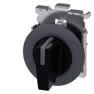 Knebelschalter beleuchtbar, 30 mm, rund, Metall matt, schwarz, Knebel kurz, Frontring für flachen Einbau, verrastend, Schaltwinkel 2x45°, 10:30h/12h/13:30h Knebelschalter SIRIUS ACT zur Schaltung und Steuerung elektrischer Verbraucher. Unter dem Markennamen SIRIUS ACT bietet Siemens ein einzigartiges Portfolio an Befehls- und Meldegeräten mit weltweiten Produkt-Zulassungen in drei modernen Designreihen aus robustem Echtmetall und hochwertigem Kunststoff. Das innovative Aufschnappkonzept vereinfacht die Montage so weit, dass dafür nur eine Hand und kein Spezialwerkzeug erforderlich ist. Als Montagebohrungen genügen nutfreie Löcher, da bereits ein 100%iger Verdrehschutz integriert ist. Dank der durchgängig hohen Schutzart sind die robusten Geräte industrietauglich und für den Außeneinsatz geeignet. Sogar die Reinigung mit Hochdruckstrahl ist möglich. Weder Staub, Öle noch aggressive Laugen können den zuverlässigen Betrieb stören. Neben der Standardverdrahtung können die meisten Geräte auch über PROFINET, AS-Interface oder IO-Link an die Steuerung angebunden werden. Damit reduzieren Sie Ihren Verdrahtungsaufwand, minimieren Fehlerquellen und gewinnen mehr Flexibilität. Komfortabel unterstützt der grafische Online-Konfigurator bei Auswahl und Bestellung von Einzelgeräten, Gehäusen und Beschriftungen. Umfangreiche Dokumentation (z.B. Handbuch, 3D-Daten, Anschlussdiagramm) ist verfügbar. Lieferbare Ausführungen: mehrere Farben, 2-4 Schaltstellungen, kurzer/langer Knebel oder Drehknopf, beleuchtet/unbeleuchtet (Beleuchtung auch nachrüstbar), verrastende/tastende Betätigung. Hinweis: Einzelgerät, Halter und Module bitte extra bestellen. SIRIUS ACT - Performance in Actionbeim Befehlen und Melden. Einfach montiert, einfach stark, einfach perfekt.