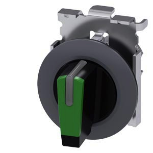 Knebelschalter, beleuchtbar, 30 mm, rund, Metall, matt, grün, Knebel, kurz, Frontring für flachen Einbau, 3 Schaltstellungen I-O-II, verrastend, Schaltwinkel 2x45°, 10:30h/12h/13:30h Knebelschalter SIRIUS ACT zur Schaltung und Steuerung elektrischer Verbraucher. Unter dem Markennamen SIRIUS ACT bietet Siemens ein einzigartiges Portfolio an Befehls- und Meldegeräten mit weltweiten Produkt-Zulassungen in drei modernen Designreihen aus robustem Echtmetall und hochwertigem Kunststoff. Das innovative Aufschnappkonzept vereinfacht die Montage so weit, dass dafür nur eine Hand und kein Spezialwerkzeug erforderlich ist. Als Montagebohrungen genügen nutfreie Löcher, da bereits ein 100%iger Verdrehschutz integriert ist. Dank der durchgängig hohen Schutzart sind die robusten Geräte industrietauglich und für den Außeneinsatz geeignet. Sogar die Reinigung mit Hochdruckstrahl ist möglich. Weder Staub, Öle noch aggressive Laugen können den zuverlässigen Betrieb stören. Neben der Standardverdrahtung können die meisten Geräte auch über PROFINET, AS-Interface oder IO-Link an die Steuerung angebunden werden. Damit reduzieren Sie Ihren Verdrahtungsaufwand, minimieren Fehlerquellen und gewinnen mehr Flexibilität. Komfortabel unterstützt der grafische Online-Konfigurator bei Auswahl und Bestellung von Einzelgeräten, Gehäusen und Beschriftungen. Umfangreiche Dokumentation (z.B. Handbuch, 3D-Daten, Anschlussdiagramm) ist verfügbar. Lieferbare Ausführungen: mehrere Farben, 2-4 Schaltstellungen, kurzer/langer Knebel oder Drehknopf, beleuchtet/unbeleuchtet (Beleuchtung auch nachrüstbar), verrastende/tastende Betätigung. Hinweis: Einzelgerät, Halter und Module bitte extra bestellen. SIRIUS ACT - Performance in Actionbeim Befehlen und Melden. Einfach montiert, einfach stark, einfach perfekt.