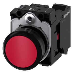Drucktaster, 22 mm, rund, Kunststoff, rot, Druckknopf, flach, tastend, mit Halter 1Ö, Federzuganschluss Drucktaster SIRIUS ACT zur Schaltung und Steuerung elektrischer Verbraucher. Unter dem Markennamen SIRIUS ACT bietet Siemens ein einzigartiges Portfolio an Befehls- und Meldegeräten mit weltweiten Produkt-Zulassungen in drei modernen Designreihen aus robustem Echtmetall und hochwertigem Kunststoff. Das innovative Aufschnappkonzept vereinfacht die Montage so weit, dass dafür nur eine Hand und kein Spezialwerkzeug erforderlich ist. Als Montagebohrungen genügen nutfreie Löcher, da bereits ein 100%iger Verdrehschutz integriert ist. Dank der durchgängig hohen Schutzart sind die robusten Geräte industrietauglich und für den Außeneinsatz geeignet. Sogar die Reinigung mit Hochdruckstrahl ist möglich. Weder Staub, Öle noch aggressive Laugen können den zuverlässigen Betrieb stören. Neben der Standardverdrahtung können die meisten Geräte auch über PROFINET, AS-Interface oder IO-Link an die Steuerung angebunden werden. Damit reduzieren Sie Ihren Verdrahtungsaufwand, minimieren Fehlerquellen und gewinnen mehr Flexibilität. Komfortabel unterstützt der grafische Online-Konfigurator bei Auswahl und Bestellung von Einzelgeräten, Gehäusen und Beschriftungen. Umfangreiche Dokumentation (z.B. Handbuch, 3D-Daten, Anschlussdiagramm) ist verfügbar. Lieferbare Ausführungen: mehrere Farben, beleuchtet/unbeleuchtet, mit/ohne Beschriftung, verrastende/tastende Betätigung, verschiedene Druckknopf- und Frontringhöhen. Hinweis: Komplettgerät, Lieferung inklusive Halter und Module. SIRIUS ACT - Performance in Action beim Befehlen und Melden. Einfach montiert, einfach stark, einfach perfekt.