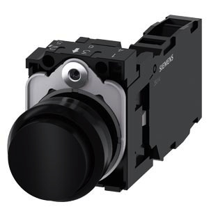 Drucktaster, 22 mm, rund, Kunststoff, schwarz, Druckknopf, hoch, tastend, mit Halter 1S+1Ö, Schraubanschluss, Drucktaster SIRIUS ACT zur Schaltung und Steuerung elektrischer Verbraucher. Unter dem Markennamen SIRIUS ACT bietet Siemens ein einzigartiges Portfolio an Befehls- und Meldegeräten mit weltweiten Produkt-Zulassungen in drei modernen Designreihen aus robustem Echtmetall und hochwertigem Kunststoff. Das innovative Aufschnappkonzept vereinfacht die Montage so weit, dass dafür nur eine Hand und kein Spezialwerkzeug erforderlich ist. Als Montagebohrungen genügen nutfreie Löcher, da bereits ein 100%iger Verdrehschutz integriert ist. Dank der durchgängig hohen Schutzart sind die robusten Geräte industrietauglich und für den Außeneinsatz geeignet. Sogar die Reinigung mit Hochdruckstrahl ist möglich. Weder Staub, Öle noch aggressive Laugen können den zuverlässigen Betrieb stören. Neben der Standardverdrahtung können die meisten Geräte auch über PROFINET, AS-Interface oder IO-Link an die Steuerung angebunden werden. Damit reduzieren Sie Ihren Verdrahtungsaufwand, minimieren Fehlerquellen und gewinnen mehr Flexibilität. Komfortabel unterstützt der grafische Online-Konfigurator bei Auswahl und Bestellung von Einzelgeräten, Gehäusen und Beschriftungen. Umfangreiche Dokumentation (z.B. Handbuch, 3D-Daten, Anschlussdiagramm) ist verfügbar. Lieferbare Ausführungen: mehrere Farben, beleuchtet/unbeleuchtet, mit/ohne Beschriftung, verrastende/tastende Betätigung, verschiedene Druckknopf- und Frontringhöhen. Hinweis: Komplettgerät, Lieferung inklusive Halter und Module. SIRIUS ACT - Performance in Action beim Befehlen und Melden. Einfach montiert, einfach stark, einfach perfekt.