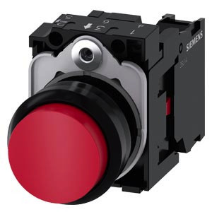 Drucktaster, 22 mm, rund, Kunststoff, rot, Druckknopf, hoch, tastend, mit Halter 1Ö, Schraubanschluss Drucktaster SIRIUS ACT zur Schaltung und Steuerung elektrischer Verbraucher. Unter dem Markennamen SIRIUS ACT bietet Siemens ein einzigartiges Portfolio an Befehls- und Meldegeräten mit weltweiten Produkt-Zulassungen in drei modernen Designreihen aus robustem Echtmetall und hochwertigem Kunststoff. Das innovative Aufschnappkonzept vereinfacht die Montage so weit, dass dafür nur eine Hand und kein Spezialwerkzeug erforderlich ist. Als Montagebohrungen genügen nutfreie Löcher, da bereits ein 100%iger Verdrehschutz integriert ist. Dank der durchgängig hohen Schutzart sind die robusten Geräte industrietauglich und für den Außeneinsatz geeignet. Sogar die Reinigung mit Hochdruckstrahl ist möglich. Weder Staub, Öle noch aggressive Laugen können den zuverlässigen Betrieb stören. Neben der Standardverdrahtung können die meisten Geräte auch über PROFINET, AS-Interface oder IO-Link an die Steuerung angebunden werden. Damit reduzieren Sie Ihren Verdrahtungsaufwand, minimieren Fehlerquellen und gewinnen mehr Flexibilität. Komfortabel unterstützt der grafische Online-Konfigurator bei Auswahl und Bestellung von Einzelgeräten, Gehäusen und Beschriftungen. Umfangreiche Dokumentation (z.B. Handbuch, 3D-Daten, Anschlussdiagramm) ist verfügbar. Lieferbare Ausführungen: mehrere Farben, beleuchtet/unbeleuchtet, mit/ohne Beschriftung, verrastende/tastende Betätigung, verschiedene Druckknopf- und Frontringhöhen. Hinweis: Komplettgerät, Lieferung inklusive Halter und Module. SIRIUS ACT - Performance in Action beim Befehlen und Melden. Einfach montiert, einfach stark, einfach perfekt.