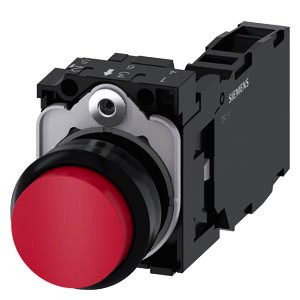 Drucktaster, 22 mm, rund, Kunststoff, rot, Druckknopf, hoch, tastend, mit Halter 1S+1Ö, Schraubanschluss, Drucktaster SIRIUS ACT zur Schaltung und Steuerung elektrischer Verbraucher. Unter dem Markennamen SIRIUS ACT bietet Siemens ein einzigartiges Portfolio an Befehls- und Meldegeräten mit weltweiten Produkt-Zulassungen in drei modernen Designreihen aus robustem Echtmetall und hochwertigem Kunststoff. Das innovative Aufschnappkonzept vereinfacht die Montage so weit, dass dafür nur eine Hand und kein Spezialwerkzeug erforderlich ist. Als Montagebohrungen genügen nutfreie Löcher, da bereits ein 100%iger Verdrehschutz integriert ist. Dank der durchgängig hohen Schutzart sind die robusten Geräte industrietauglich und für den Außeneinsatz geeignet. Sogar die Reinigung mit Hochdruckstrahl ist möglich. Weder Staub, Öle noch aggressive Laugen können den zuverlässigen Betrieb stören. Neben der Standardverdrahtung können die meisten Geräte auch über PROFINET, AS-Interface oder IO-Link an die Steuerung angebunden werden. Damit reduzieren Sie Ihren Verdrahtungsaufwand, minimieren Fehlerquellen und gewinnen mehr Flexibilität. Komfortabel unterstützt der grafische Online-Konfigurator bei Auswahl und Bestellung von Einzelgeräten, Gehäusen und Beschriftungen. Umfangreiche Dokumentation (z.B. Handbuch, 3D-Daten, Anschlussdiagramm) ist verfügbar. Lieferbare Ausführungen: mehrere Farben, beleuchtet/unbeleuchtet, mit/ohne Beschriftung, verrastende/tastende Betätigung, verschiedene Druckknopf- und Frontringhöhen. Hinweis: Komplettgerät, Lieferung inklusive Halter und Module. SIRIUS ACT - Performance in Action beim Befehlen und Melden. Einfach montiert, einfach stark, einfach perfekt.