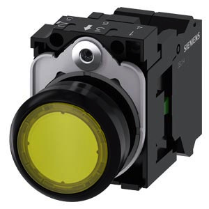Leuchtdrucktaster, 22 mm, rund, Kunststoff, gelb, Druckknopf, flach, tastend, mit Halter, 1S, LED-Modul mit integrierter LED AC/DC 24V, Federzuganschluss Leuchtdrucktaster SIRIUS ACT zur Schaltung und Steuerung elektrischer Verbraucher. Unter dem Markennamen SIRIUS ACT bietet Siemens ein einzigartiges Portfolio an Befehls- und Meldegeräten mit weltweiten Produkt-Zulassungen in drei modernen Designreihen aus robustem Echtmetall und hochwertigem Kunststoff. Das innovative Aufschnappkonzept vereinfacht die Montage so weit, dass dafür nur eine Hand und kein Spezialwerkzeug erforderlich ist. Als Montagebohrungen genügen nutfreie Löcher, da bereits ein 100%iger Verdrehschutz integriert ist. Dank der durchgängig hohen Schutzart sind die robusten Geräte industrietauglich und für den Außeneinsatz geeignet. Sogar die Reinigung mit Hochdruckstrahl ist möglich. Weder Staub, Öle noch aggressive Laugen können den zuverlässigen Betrieb stören. Neben der Standardverdrahtung können die meisten Geräte auch über PROFINET, AS-Interface oder IO-Link an die Steuerung angebunden werden. Damit reduzieren Sie Ihren Verdrahtungsaufwand, minimieren Fehlerquellen und gewinnen mehr Flexibilität. Komfortabel unterstützt der grafische Online-Konfigurator bei Auswahl und Bestellung von Einzelgeräten, Gehäusen und Beschriftungen. Umfangreiche Dokumentation (z.B. Handbuch, 3D-Daten, Anschlussdiagramm) ist verfügbar. Lieferbare Ausführungen: mehrere Farben, beleuchtet/unbeleuchtet, mit/ohne Beschriftung, verrastende/tastende Betätigung, verschiedene Druckknopf- und Frontringhöhen. Hinweis: Komplettgerät, Lieferung inklusive Halter und Module. SIRIUS ACT - Performance in Action beim Befehlen und Melden. Einfach montiert, einfach stark, einfach perfekt.