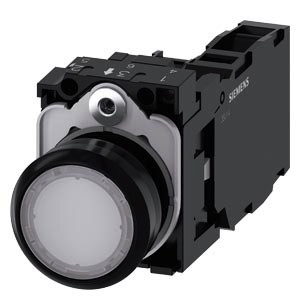 Leuchtdrucktaster, 22 mm, rund, Kunststoff, weiß, Druckknopf, flach, tastend, mit Halter, 1S+1Ö, LED-Modul mit integrierter LED AC/DC 24V, Schraubanschluss Leuchtdrucktaster SIRIUS ACT zur Schaltung und Steuerung elektrischer Verbraucher. Unter dem Markennamen SIRIUS ACT bietet Siemens ein einzigartiges Portfolio an Befehls- und Meldegeräten mit weltweiten Produkt-Zulassungen in drei modernen Designreihen aus robustem Echtmetall und hochwertigem Kunststoff. Das innovative Aufschnappkonzept vereinfacht die Montage so weit, dass dafür nur eine Hand und kein Spezialwerkzeug erforderlich ist. Als Montagebohrungen genügen nutfreie Löcher, da bereits ein 100%iger Verdrehschutz integriert ist. Dank der durchgängig hohen Schutzart sind die robusten Geräte industrietauglich und für den Außeneinsatz geeignet. Sogar die Reinigung mit Hochdruckstrahl ist möglich. Weder Staub, Öle noch aggressive Laugen können den zuverlässigen Betrieb stören. Neben der Standardverdrahtung können die meisten Geräte auch über PROFINET, AS-Interface oder IO-Link an die Steuerung angebunden werden. Damit reduzieren Sie Ihren Verdrahtungsaufwand, minimieren Fehlerquellen und gewinnen mehr Flexibilität. Komfortabel unterstützt der grafische Online-Konfigurator bei Auswahl und Bestellung von Einzelgeräten, Gehäusen und Beschriftungen. Umfangreiche Dokumentation (z.B. Handbuch, 3D-Daten, Anschlussdiagramm) ist verfügbar. Lieferbare Ausführungen: mehrere Farben, beleuchtet/unbeleuchtet, mit/ohne Beschriftung, verrastende/tastende Betätigung, verschiedene Druckknopf- und Frontringhöhen. Hinweis: Komplettgerät, Lieferung inklusive Halter und Module. SIRIUS ACT - Performance in Action beim Befehlen und Melden. Einfach montiert, einfach stark, einfach perfekt.
