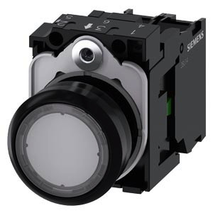 Leuchtdrucktaster, 22 mm, rund, Kunststoff, klar, Druckknopf, flach, tastend, mit Halter, 1S, LED-Modul mit integrierter LED AC/DC 24V, Schraubanschluss Leuchtdrucktaster SIRIUS ACT zur Schaltung und Steuerung elektrischer Verbraucher. Unter dem Markennamen SIRIUS ACT bietet Siemens ein einzigartiges Portfolio an Befehls- und Meldegeräten mit weltweiten Produkt-Zulassungen in drei modernen Designreihen aus robustem Echtmetall und hochwertigem Kunststoff. Das innovative Aufschnappkonzept vereinfacht die Montage so weit, dass dafür nur eine Hand und kein Spezialwerkzeug erforderlich ist. Als Montagebohrungen genügen nutfreie Löcher, da bereits ein 100%iger Verdrehschutz integriert ist. Dank der durchgängig hohen Schutzart sind die robusten Geräte industrietauglich und für den Außeneinsatz geeignet. Sogar die Reinigung mit Hochdruckstrahl ist möglich. Weder Staub, Öle noch aggressive Laugen können den zuverlässigen Betrieb stören. Neben der Standardverdrahtung können die meisten Geräte auch über PROFINET, AS-Interface oder IO-Link an die Steuerung angebunden werden. Damit reduzieren Sie Ihren Verdrahtungsaufwand, minimieren Fehlerquellen und gewinnen mehr Flexibilität. Komfortabel unterstützt der grafische Online-Konfigurator bei Auswahl und Bestellung von Einzelgeräten, Gehäusen und Beschriftungen. Umfangreiche Dokumentation (z.B. Handbuch, 3D-Daten, Anschlussdiagramm) ist verfügbar. Lieferbare Ausführungen: mehrere Farben, beleuchtet/unbeleuchtet, mit/ohne Beschriftung, verrastende/tastende Betätigung, verschiedene Druckknopf- und Frontringhöhen. Hinweis: Komplettgerät, Lieferung inklusive Halter und Module. SIRIUS ACT - Performance in Action beim Befehlen und Melden. Einfach montiert, einfach stark, einfach perfekt.