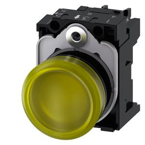 Leuchtmelder, 22 mm, rund, Kunststoff, gelb, Linse, glatt, mit Halter, LED-Modul, mit integrierter LED AC/DC 24V, Schraubanschluss Leuchtmelder SIRIUS ACT zur Signalisierung von Schaltzuständen oder Störungen in Anlagen mit brillianter Leuchtkraft dank energieeffizienter LED-Technologie. Unter dem Markennamen SIRIUS ACT bietet Siemens ein einzigartiges Portfolio an Befehls- und Meldegeräten mit weltweiten Produkt-Zulassungen in drei modernen Designreihen aus robustem Echtmetall und hochwertigem Kunststoff. Das innovative Aufschnappkonzept vereinfacht die Montage so weit, dass dafür nur eine Hand und kein Spezialwerkzeug erforderlich ist. Als Montagebohrungen genügen nutfreie Löcher, da bereits ein 100%iger Verdrehschutz integriert ist. Dank der durchgängig hohen Schutzart sind die robusten Geräte industrietauglich und für den Außeneinsatz geeignet. Sogar die Reinigung mit Hochdruckstrahl ist möglich. Weder Staub, Öle noch aggressive Laugen können den zuverlässigen Betrieb stören. Neben der Standardverdrahtung können die meisten Geräte auch über PROFINET, AS-Interface oder IO-Link an die Steuerung angebunden werden. Damit reduzieren Sie Ihren Verdrahtungsaufwand, minimieren Fehlerquellen und gewinnen mehr Flexibilität. Komfortabel unterstützt der grafische Online-Konfigurator bei Auswahl und Bestellung von Einzelgeräten, Gehäusen und Beschriftungen. Umfangreiche Dokumentation (z.B. Handbuch, 3D-Daten, Anschlussdiagramm) ist verfügbar. Lieferbare Ausführungen: mehrere Farben, verschiedene Spannungsvarianten. Hinweis: Komplettgerät, Lieferung inklusive Halter und Module. SIRIUS ACT - Performance in Action beim Befehlen und Melden. Einfach montiert, einfach stark, einfach perfekt.