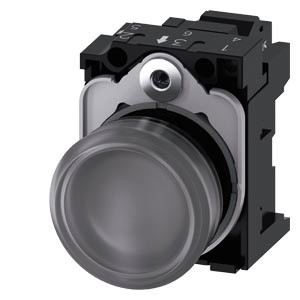 Leuchtmelder, 22 mm, rund, Kunststoff, klar, Linse, glatt, mit Halter, LED-Modul, mit integrierter LED AC/DC 24V, Federzuganschluss Leuchtmelder SIRIUS ACT zur Signalisierung von Schaltzuständen oder Störungen in Anlagen mit brillianter Leuchtkraft dank energieeffizienter LED-Technologie. Unter dem Markennamen SIRIUS ACT bietet Siemens ein einzigartiges Portfolio an Befehls- und Meldegeräten mit weltweiten Produkt-Zulassungen in drei modernen Designreihen aus robustem Echtmetall und hochwertigem Kunststoff. Das innovative Aufschnappkonzept vereinfacht die Montage so weit, dass dafür nur eine Hand und kein Spezialwerkzeug erforderlich ist. Als Montagebohrungen genügen nutfreie Löcher, da bereits ein 100%iger Verdrehschutz integriert ist. Dank der durchgängig hohen Schutzart sind die robusten Geräte industrietauglich und für den Außeneinsatz geeignet. Sogar die Reinigung mit Hochdruckstrahl ist möglich. Weder Staub, Öle noch aggressive Laugen können den zuverlässigen Betrieb stören. Neben der Standardverdrahtung können die meisten Geräte auch über PROFINET, AS-Interface oder IO-Link an die Steuerung angebunden werden. Damit reduzieren Sie Ihren Verdrahtungsaufwand, minimieren Fehlerquellen und gewinnen mehr Flexibilität. Komfortabel unterstützt der grafische Online-Konfigurator bei Auswahl und Bestellung von Einzelgeräten, Gehäusen und Beschriftungen. Umfangreiche Dokumentation (z.B. Handbuch, 3D-Daten, Anschlussdiagramm) ist verfügbar. Lieferbare Ausführungen: mehrere Farben, verschiedene Spannungsvarianten. Hinweis: Komplettgerät, Lieferung inklusive Halter und Module. SIRIUS ACT - Performance in Action beim Befehlen und Melden. Einfach montiert, einfach stark, einfach perfekt.