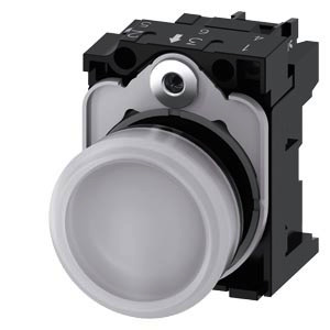 Leuchtmelder, 22 mm, rund, Kunststoff, weiß, Linse, glatt, mit Halter, LED-Modul, mit integrierter LED AC 230 V, Schraubanschluss Leuchtmelder SIRIUS ACT zur Signalisierung von Schaltzuständen oder Störungen in Anlagen mit brillianter Leuchtkraft dank energieeffizienter LED-Technologie. Unter dem Markennamen SIRIUS ACT bietet Siemens ein einzigartiges Portfolio an Befehls- und Meldegeräten mit weltweiten Produkt-Zulassungen in drei modernen Designreihen aus robustem Echtmetall und hochwertigem Kunststoff. Das innovative Aufschnappkonzept vereinfacht die Montage so weit, dass dafür nur eine Hand und kein Spezialwerkzeug erforderlich ist. Als Montagebohrungen genügen nutfreie Löcher, da bereits ein 100%iger Verdrehschutz integriert ist. Dank der durchgängig hohen Schutzart sind die robusten Geräte industrietauglich und für den Außeneinsatz geeignet. Sogar die Reinigung mit Hochdruckstrahl ist möglich. Weder Staub, Öle noch aggressive Laugen können den zuverlässigen Betrieb stören. Neben der Standardverdrahtung können die meisten Geräte auch über PROFINET, AS-Interface oder IO-Link an die Steuerung angebunden werden. Damit reduzieren Sie Ihren Verdrahtungsaufwand, minimieren Fehlerquellen und gewinnen mehr Flexibilität. Komfortabel unterstützt der grafische Online-Konfigurator bei Auswahl und Bestellung von Einzelgeräten, Gehäusen und Beschriftungen. Umfangreiche Dokumentation (z.B. Handbuch, 3D-Daten, Anschlussdiagramm) ist verfügbar. Lieferbare Ausführungen: mehrere Farben, verschiedene Spannungsvarianten. Hinweis: Komplettgerät, Lieferung inklusive Halter und Module. SIRIUS ACT - Performance in Action beim Befehlen und Melden. Einfach montiert, einfach stark, einfach perfekt.